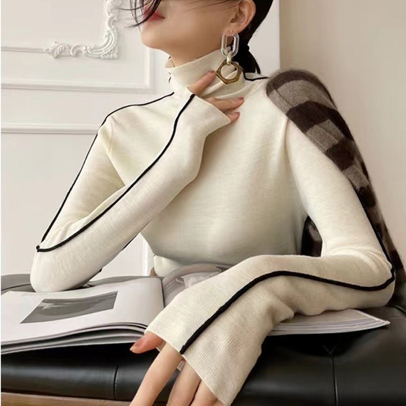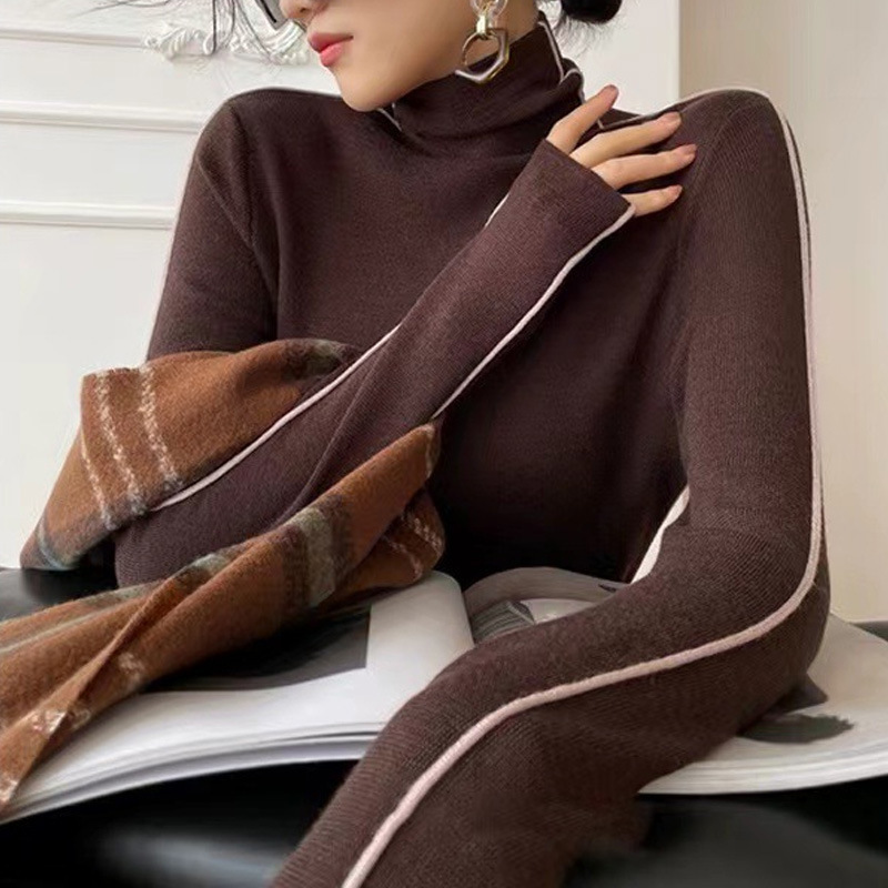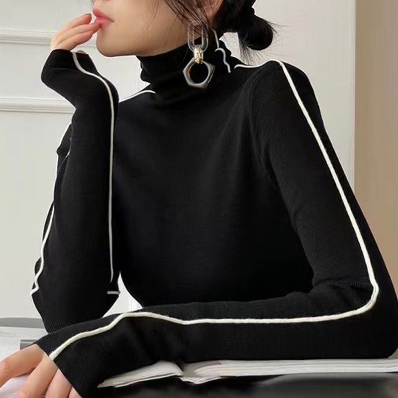 높은 칼라 보토밍 셔츠 여성용 가을 및 겨울 코트 슬림 핏 하이 엔드 이너 스웨터 두꺼운 더미 칼라 올 매치 탑