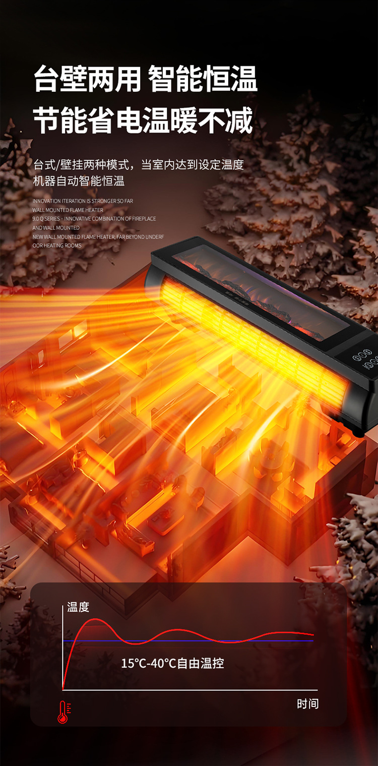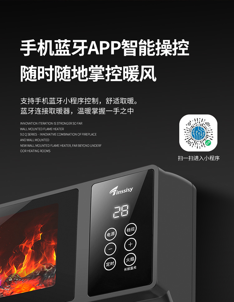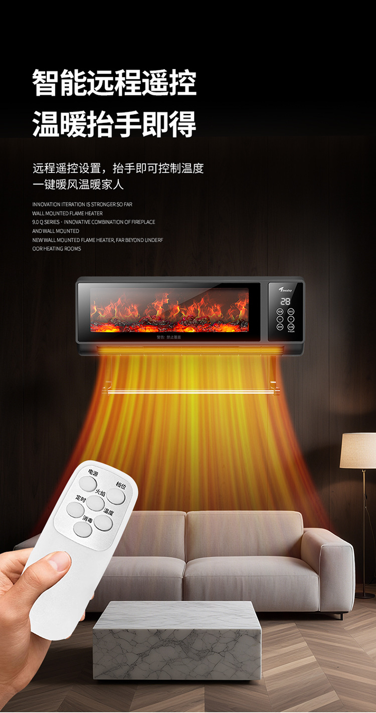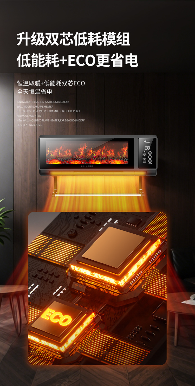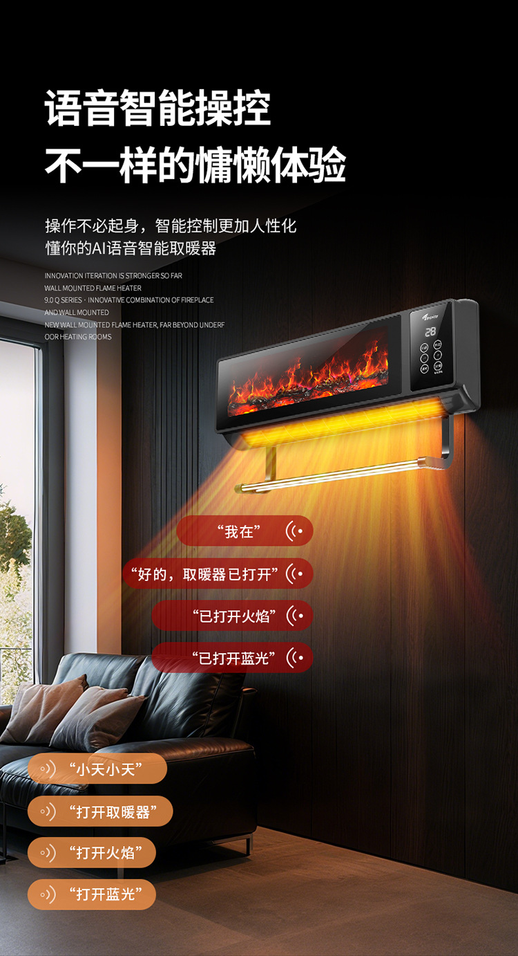 소스 제조 업체 그래 핀 히터 가정용 벽에 장착 된 불꽃 벽난로 음성 속도 가열 히터 에너지 절약