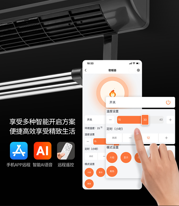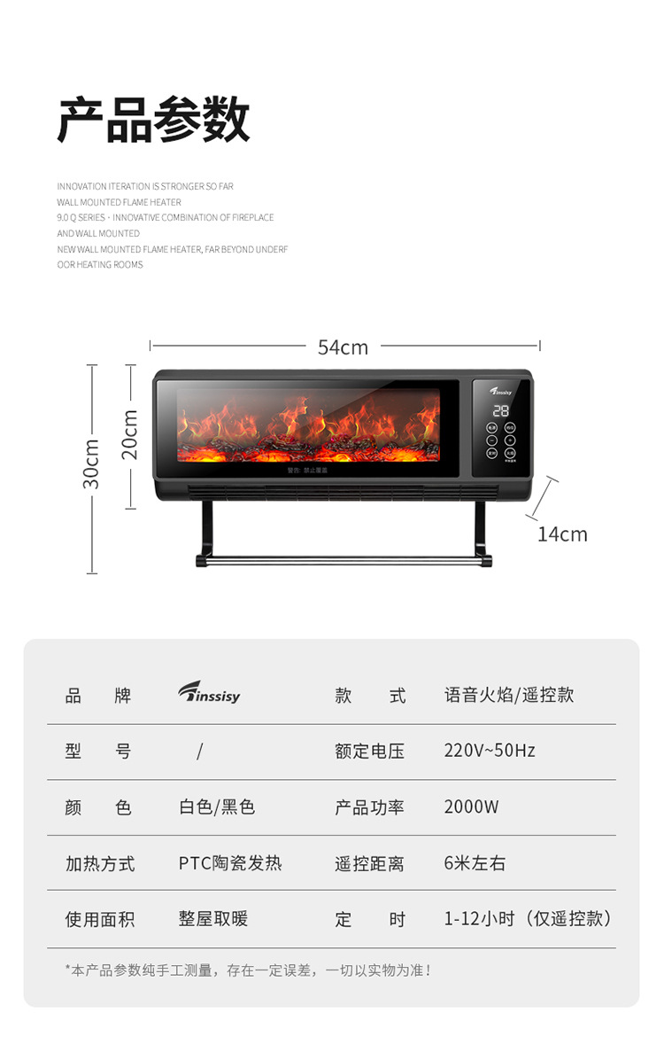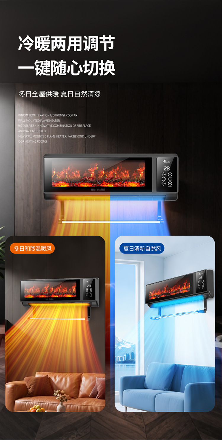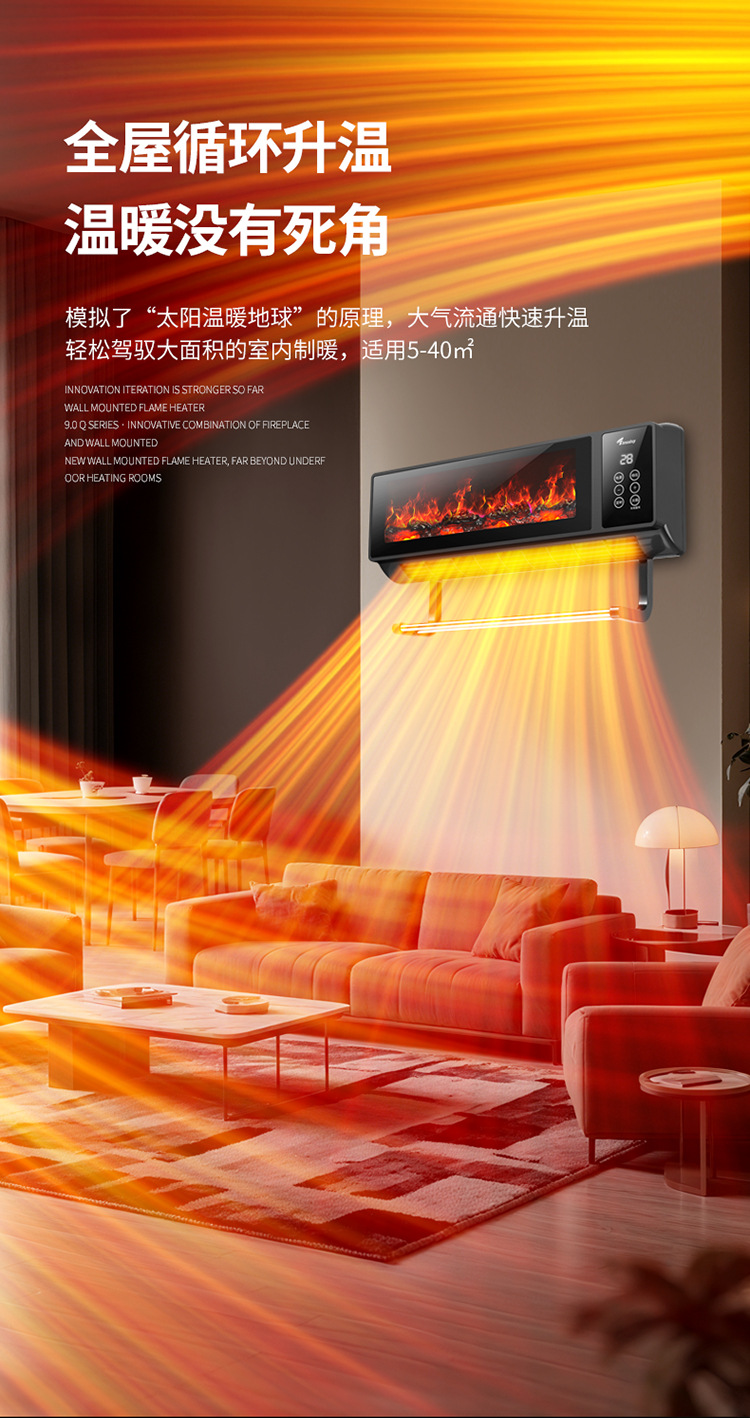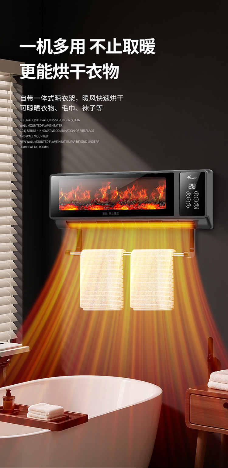 소스 제조 업체 그래 핀 히터 가정용 벽에 장착 된 불꽃 벽난로 음성 속도 가열 히터 에너지 절약