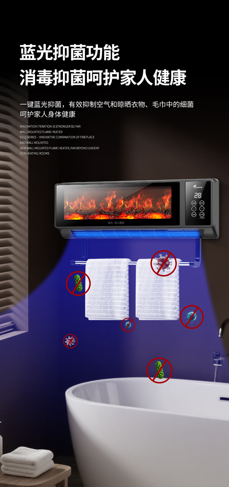 소스 제조 업체 그래 핀 히터 가정용 벽에 장착 된 불꽃 벽난로 음성 속도 가열 히터 에너지 절약스토어 가기