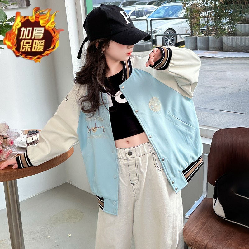 아동복 여아 양털 재킷 가을, 겨울 2025 중대형 아동 대학 스타일 캐주얼 가을 야구 유니폼 탑 캐주얼웨어