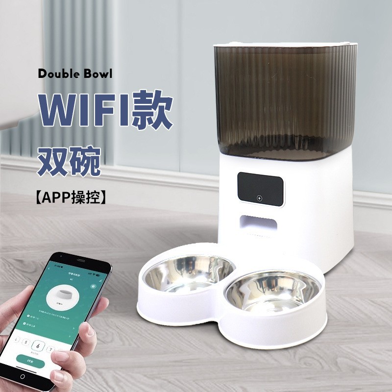 애완 동물 지능형 자동 피더 타이밍 양적 공급 기계 시각적 원격 제어 고양이 식품 개 식품 더블 그릇 도매스토어 가기