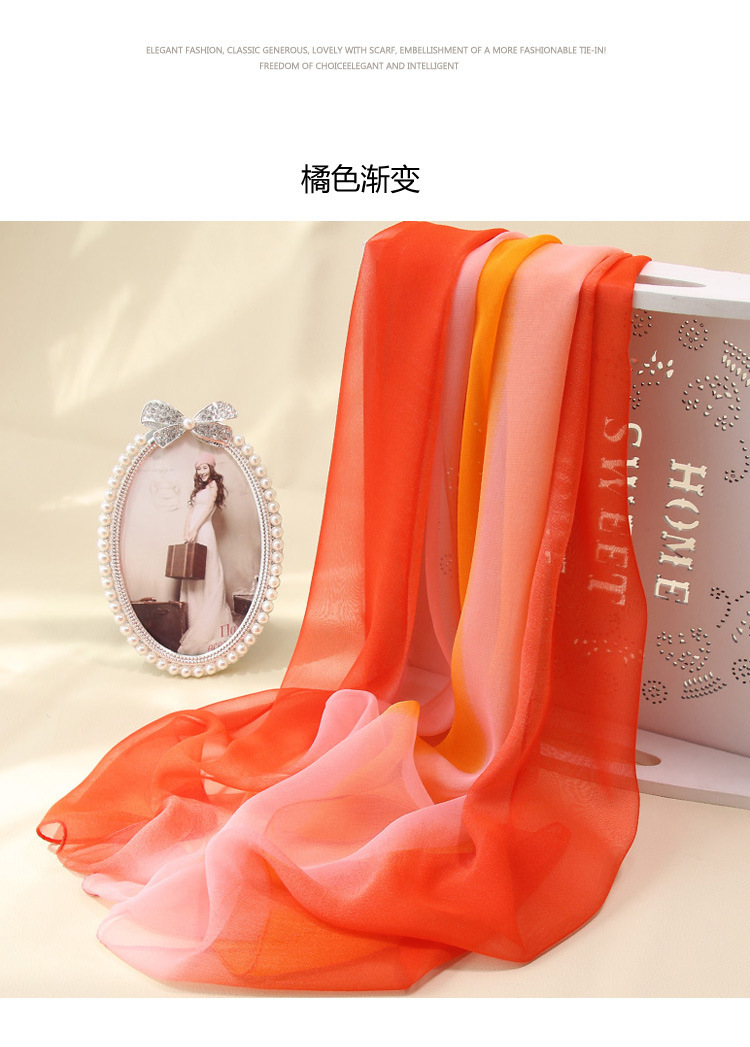 댄스 그라디언트 실크 스카프 여성의 봄과 가을 얇은 Georgette 스카프 바디 에티켓 쇼 여름 해변 목도리