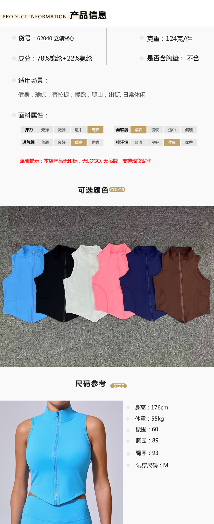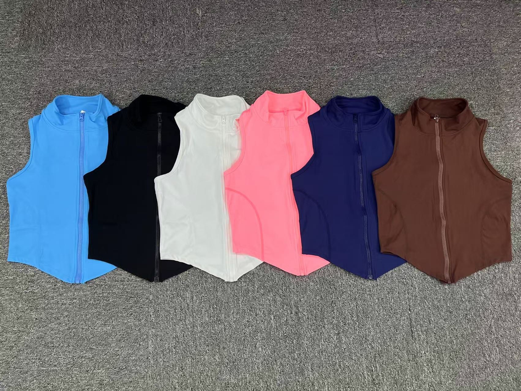 지퍼 자켓 요가 최고 스포츠 민소매 칼라 자켓 여성 가을 겨울 달리기 훈련 빠른 건조 조끼 62040스토어 가기