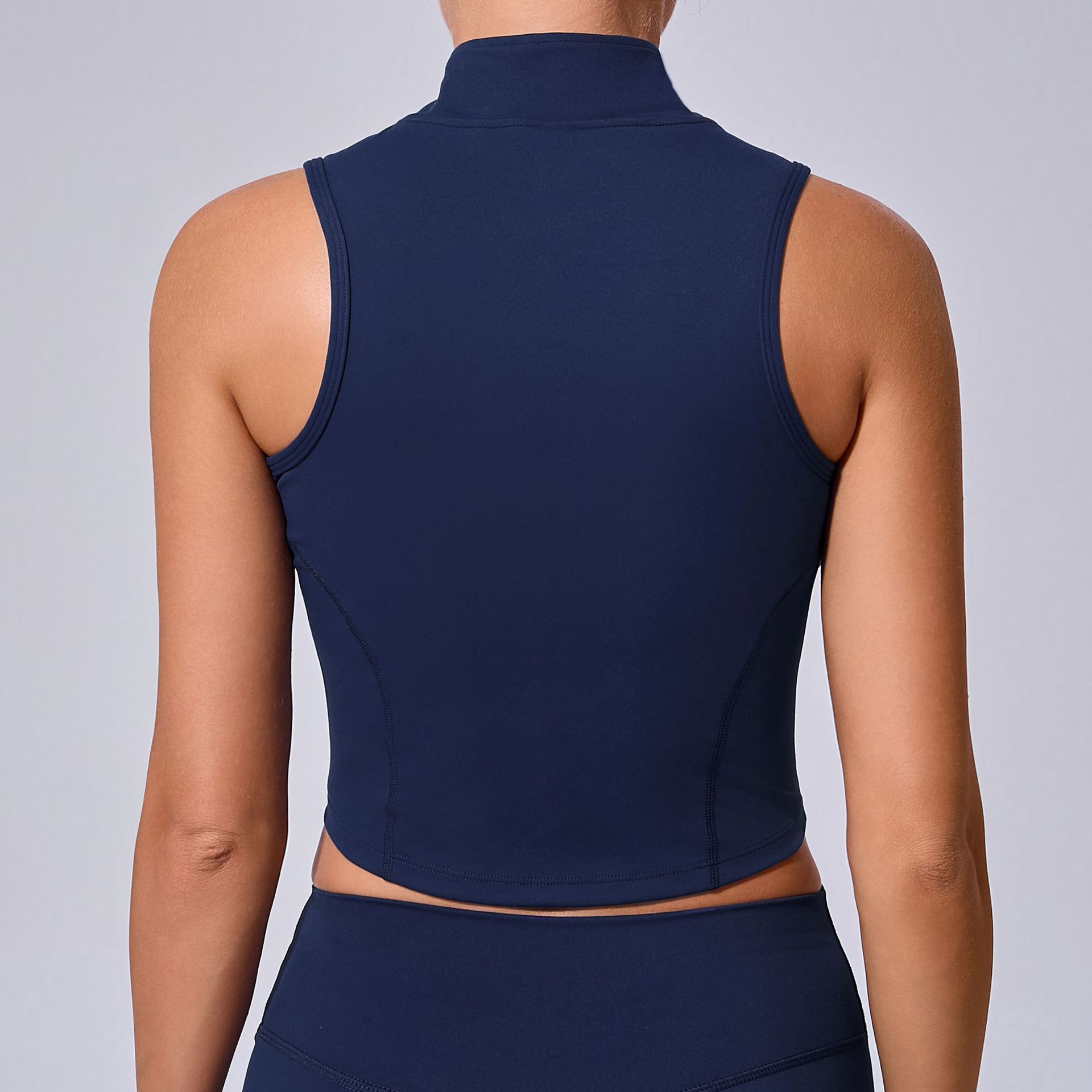 지퍼 자켓 요가 최고 스포츠 민소매 칼라 자켓 여성 가을 겨울 달리기 훈련 빠른 건조 조끼 62040
