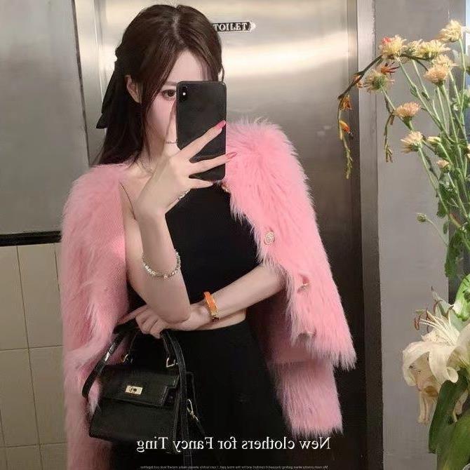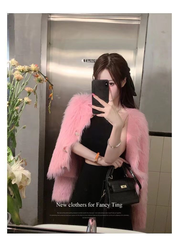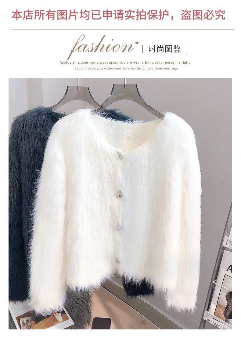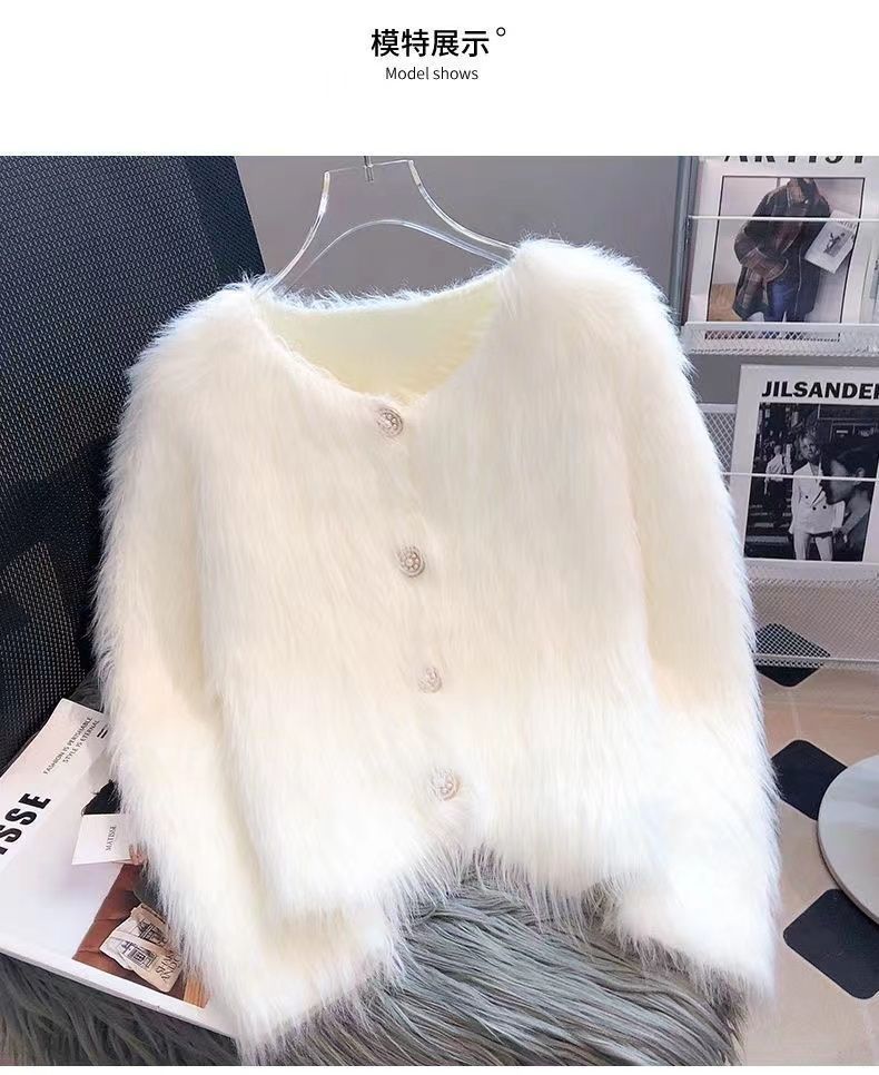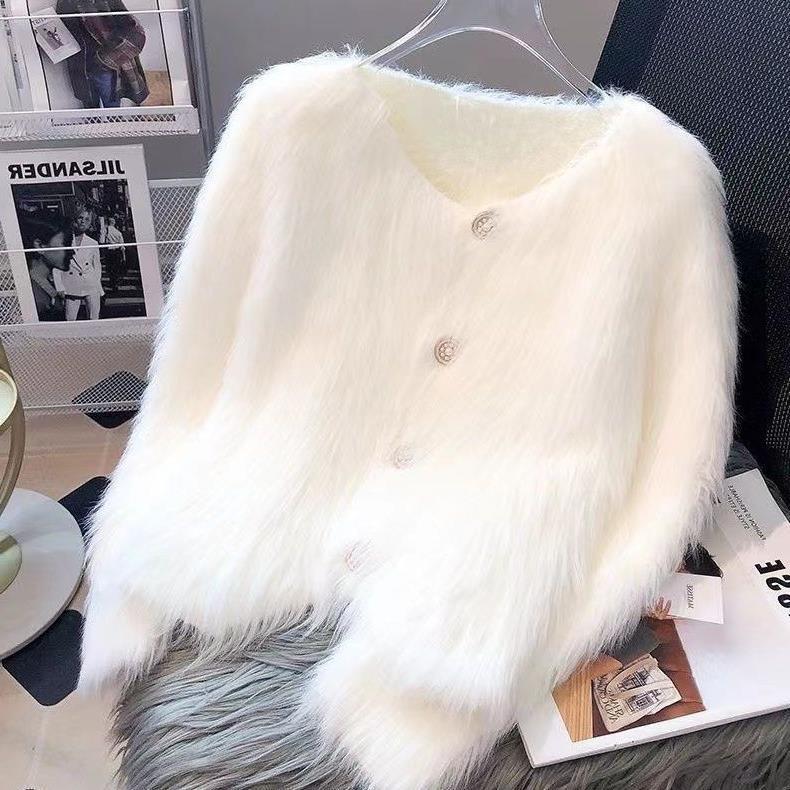 모조 밍크 벨벳 니트 카디건 스웨터 코트 여성의 가을과 겨울 두꺼운 2024 새로운 짧은 유럽 소프트 왁스스토어 가기