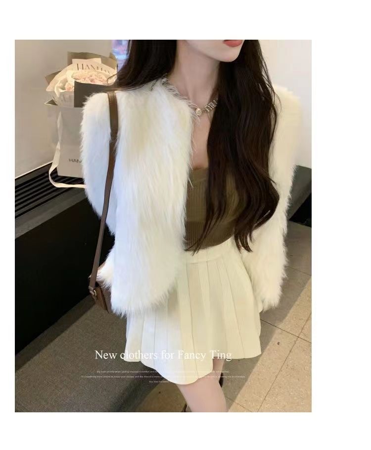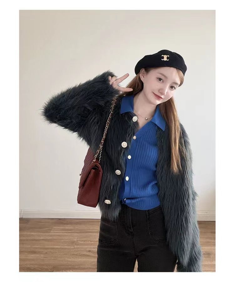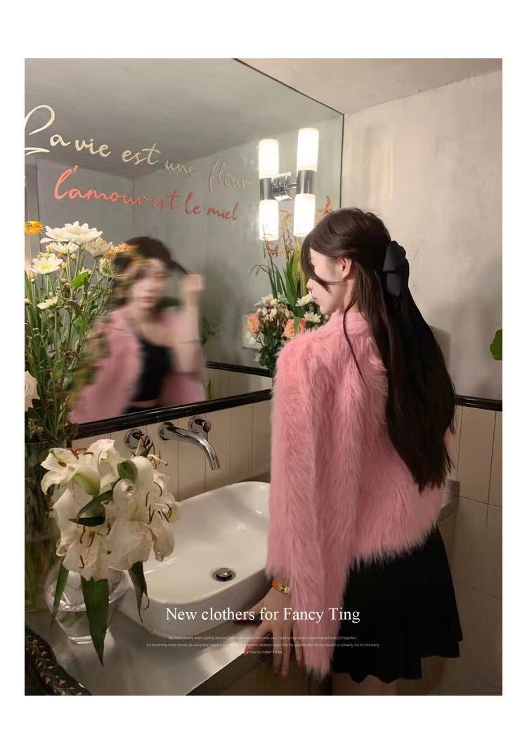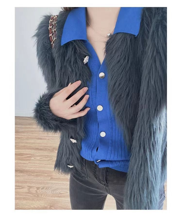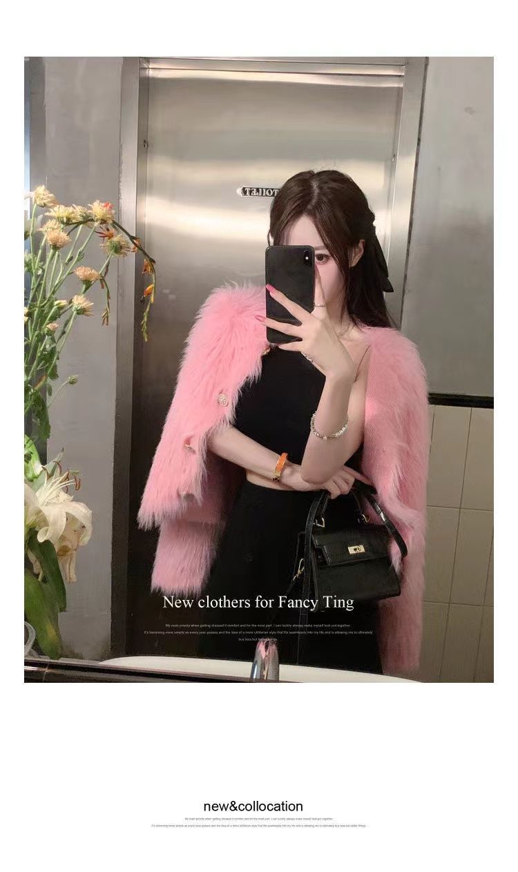 모조 밍크 벨벳 니트 카디건 스웨터 코트 여성의 가을과 겨울 두꺼운 2024 새로운 짧은 유럽 소프트 왁스스토어 가기