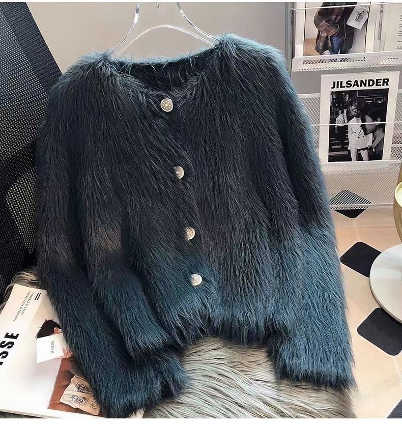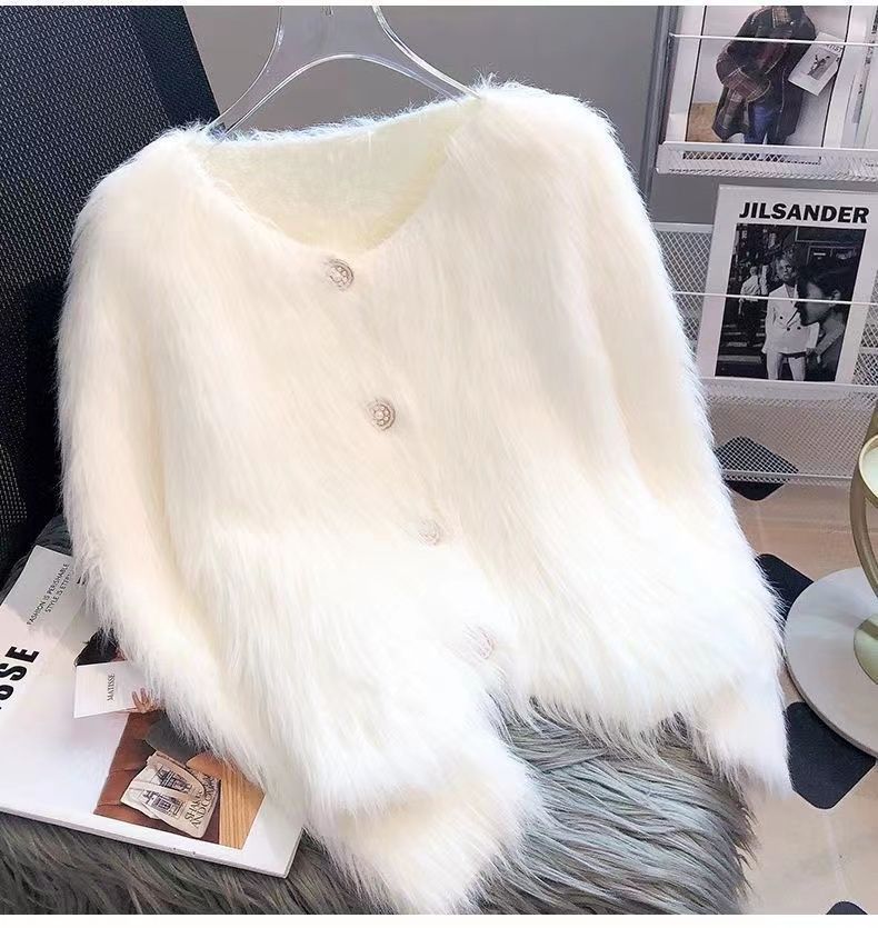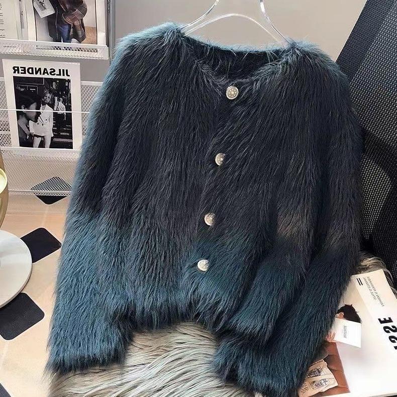 모조 밍크 벨벳 니트 카디건 스웨터 코트 여성의 가을과 겨울 두꺼운 2024 새로운 짧은 유럽 소프트 왁스