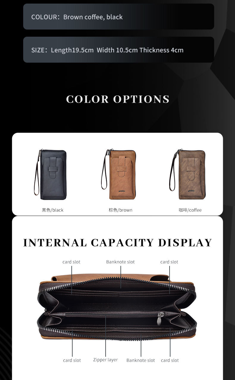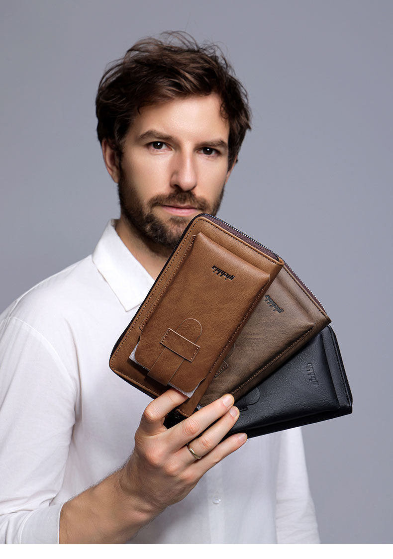 GIEBHIA 남성 지갑 다기능 핸드백 트렌드 성격 긴 지퍼 도난 방지 TEMU 국경 재고