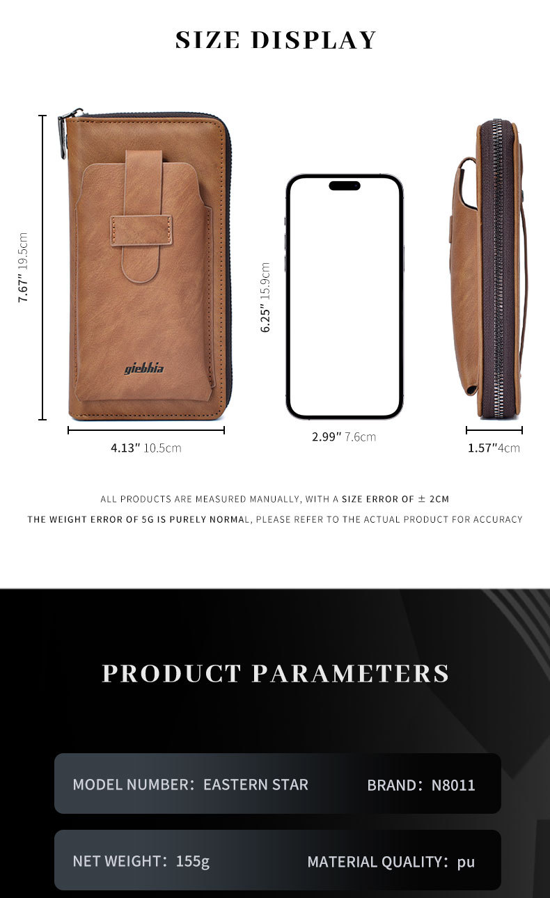 GIEBHIA 남성 지갑 다기능 핸드백 트렌드 성격 긴 지퍼 도난 방지 TEMU 국경 재고스토어 가기