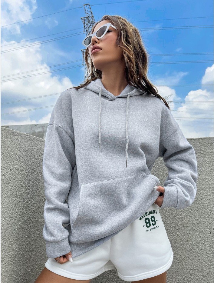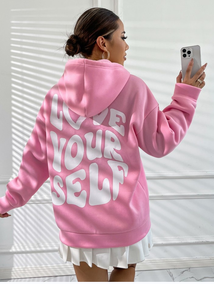 국경 간 대외 무역 여성 양털 후디 2024 새 뒷편지 인쇄 후드 스웨터 어깨 소매 실
