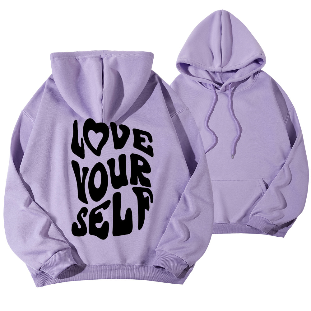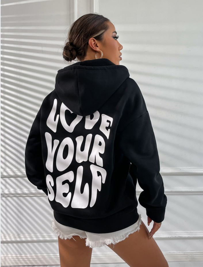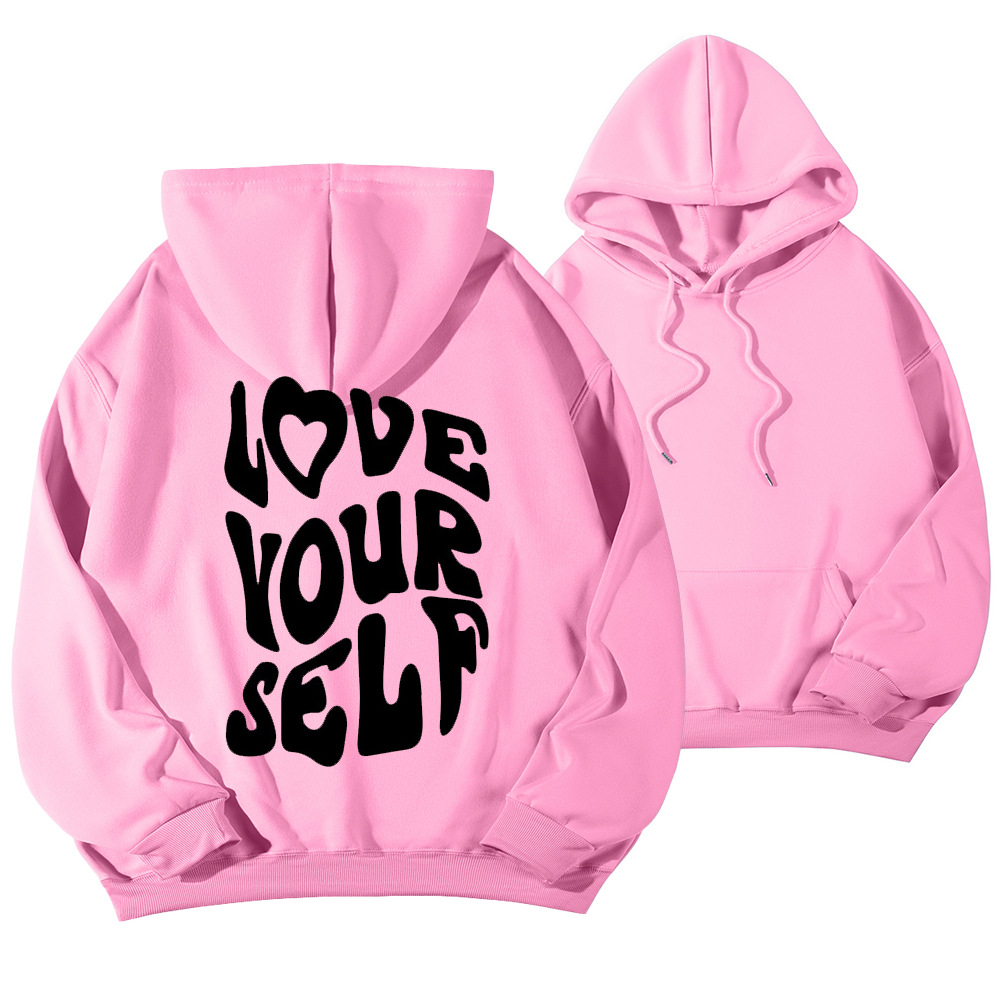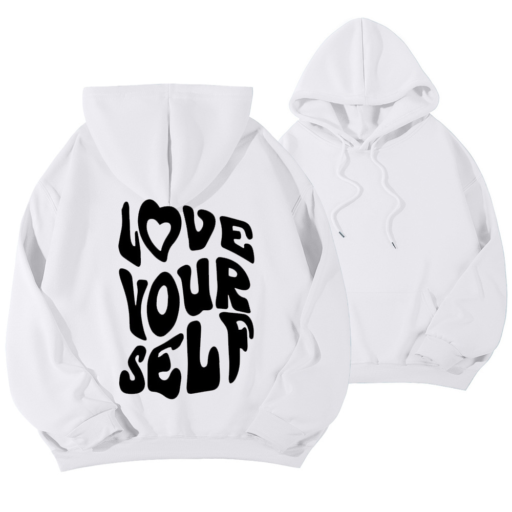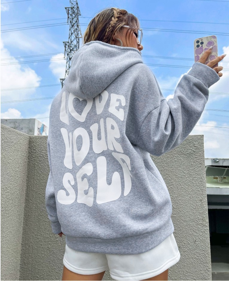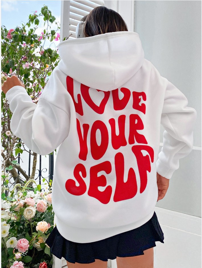 국경 간 대외 무역 여성 양털 후디 2024 새 뒷편지 인쇄 후드 스웨터 어깨 소매 실스토어 가기