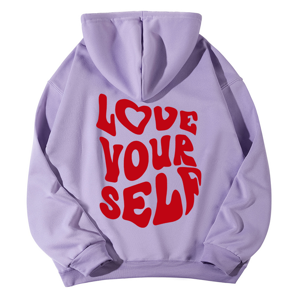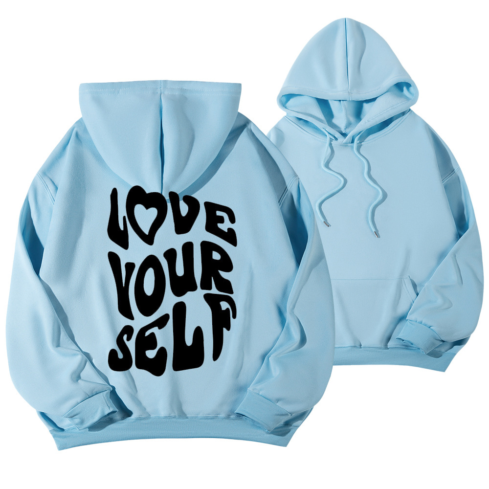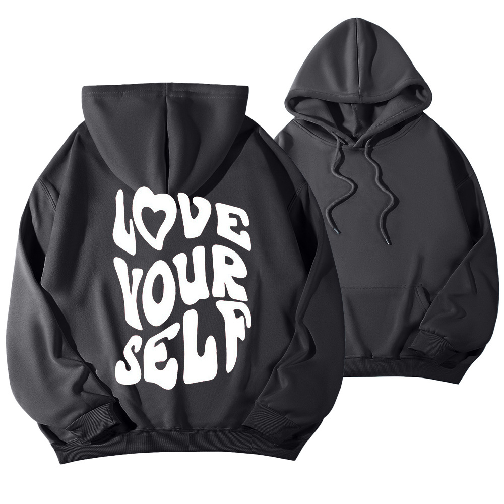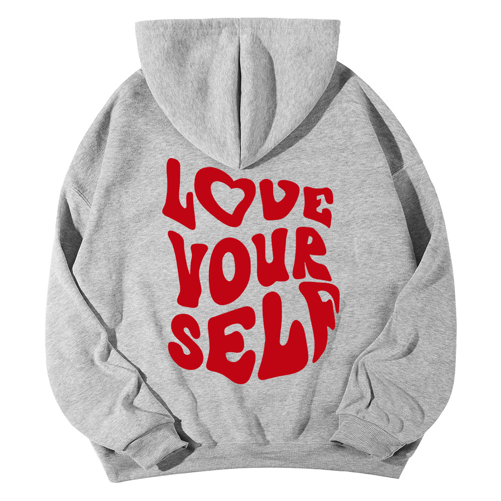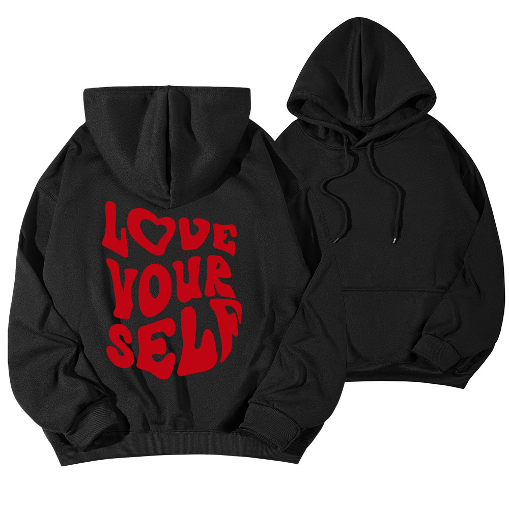 국경 간 대외 무역 여성 양털 후디 2024 새 뒷편지 인쇄 후드 스웨터 어깨 소매 실스토어 가기