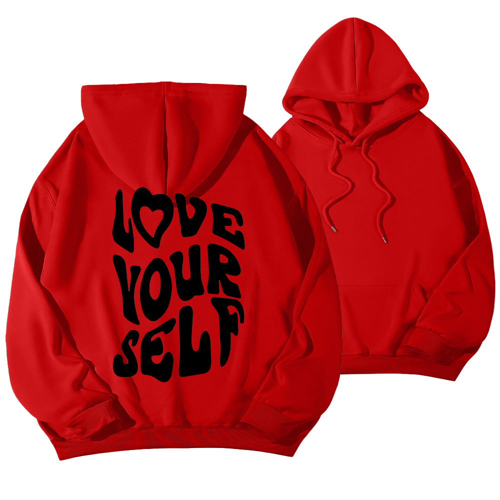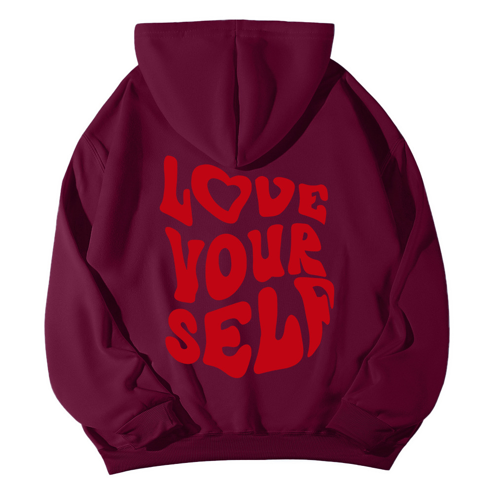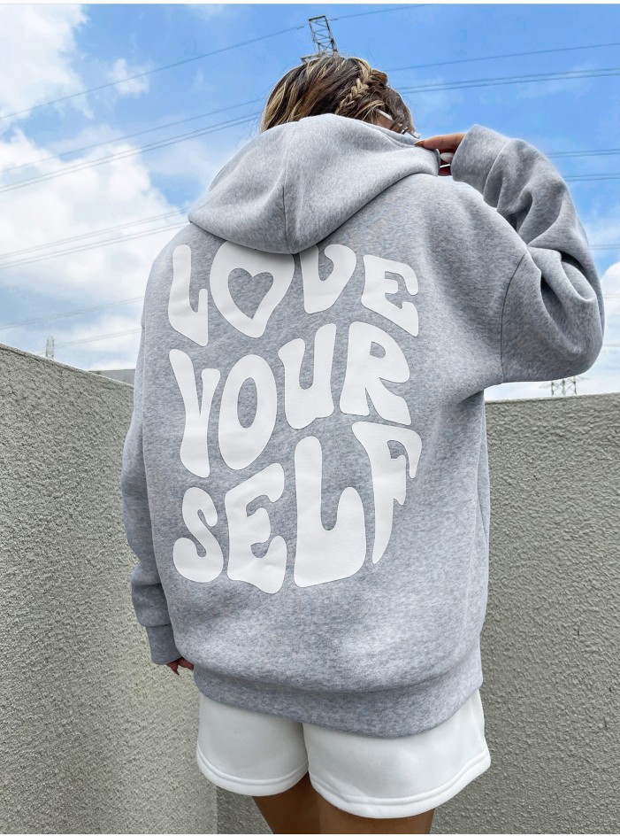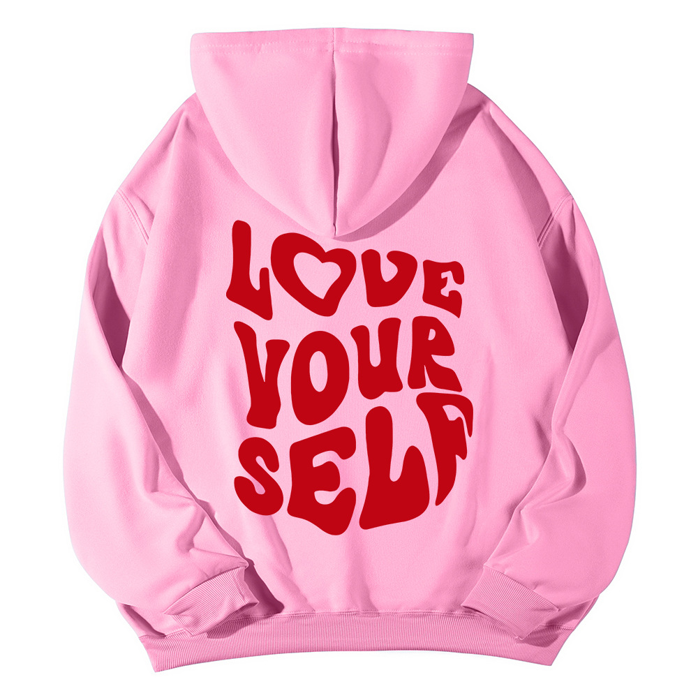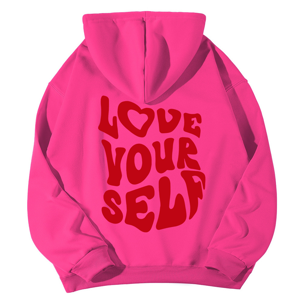 국경 간 대외 무역 여성 양털 후디 2024 새 뒷편지 인쇄 후드 스웨터 어깨 소매 실스토어 가기