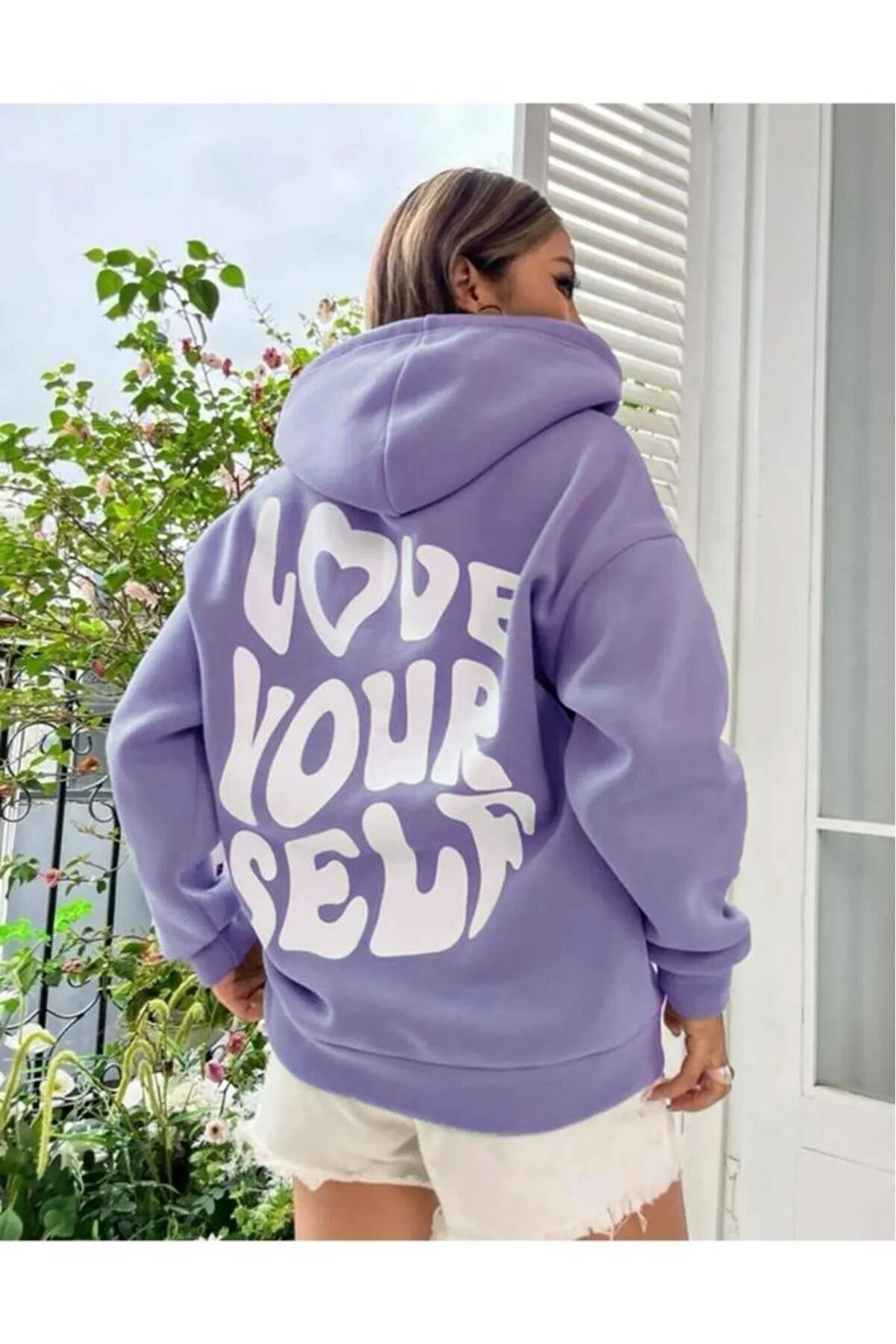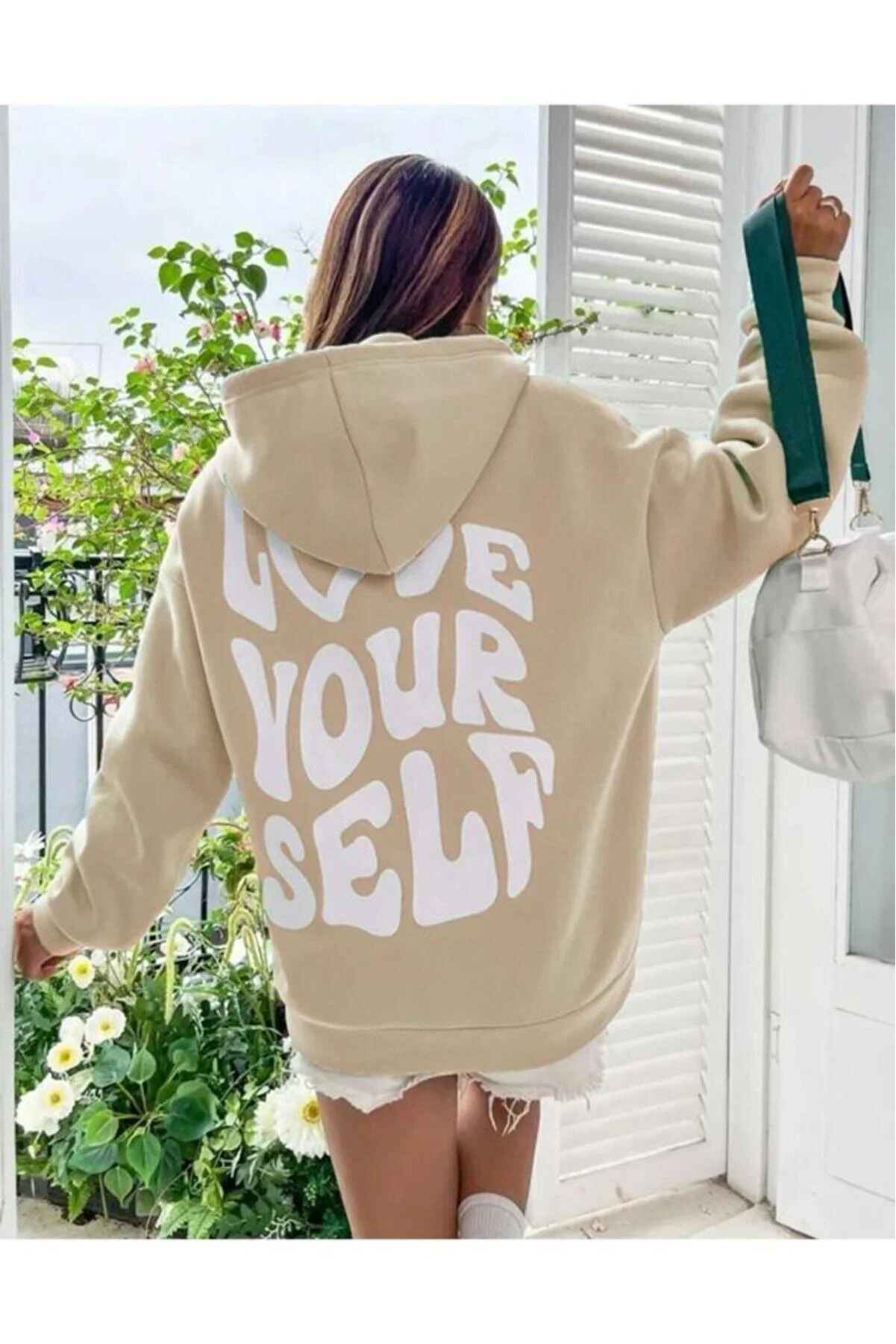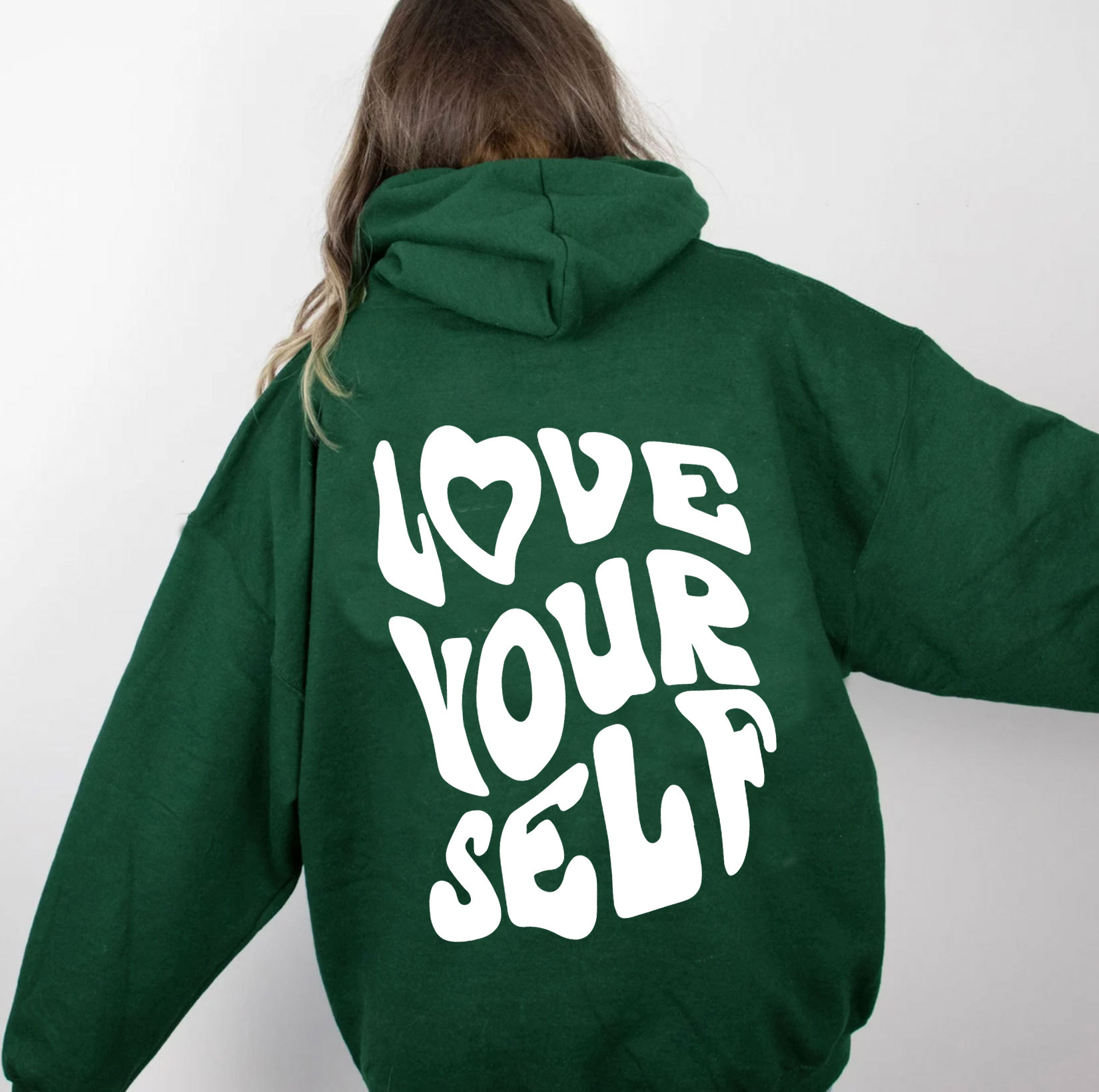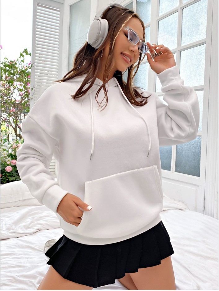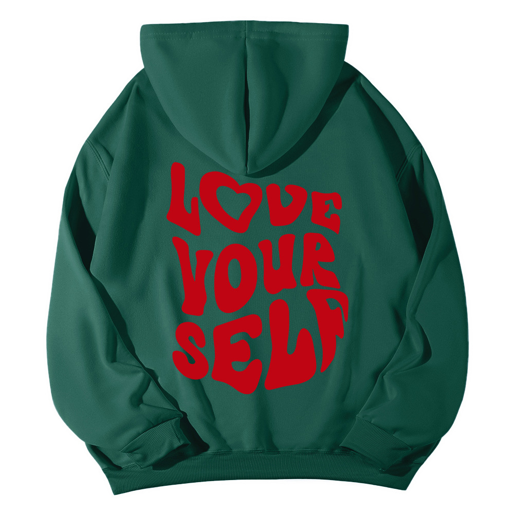 국경 간 대외 무역 여성 양털 후디 2024 새 뒷편지 인쇄 후드 스웨터 어깨 소매 실스토어 가기