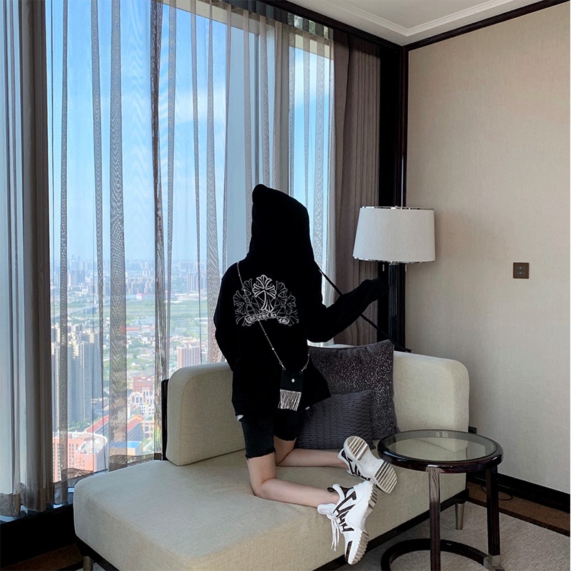 24SS 봄과 여름 새로운 크롬 하트 오버랩핑 팬텀 크로스 지퍼 후드 자켓 남녀스토어 가기