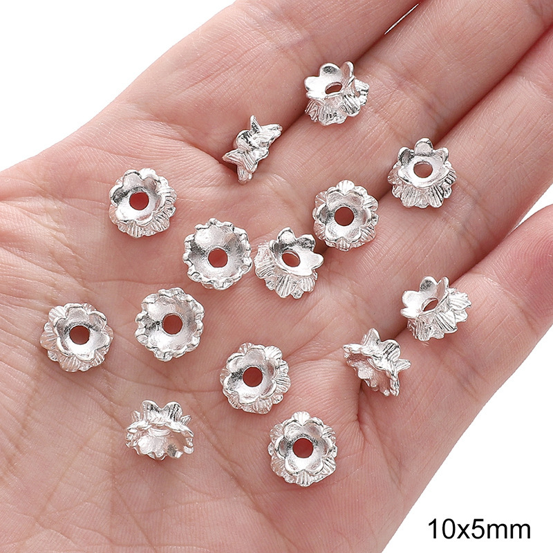 • #양면 꽃 3개, 8x5mm, 구멍 직경 약 2mm, 은색, 10개/팩