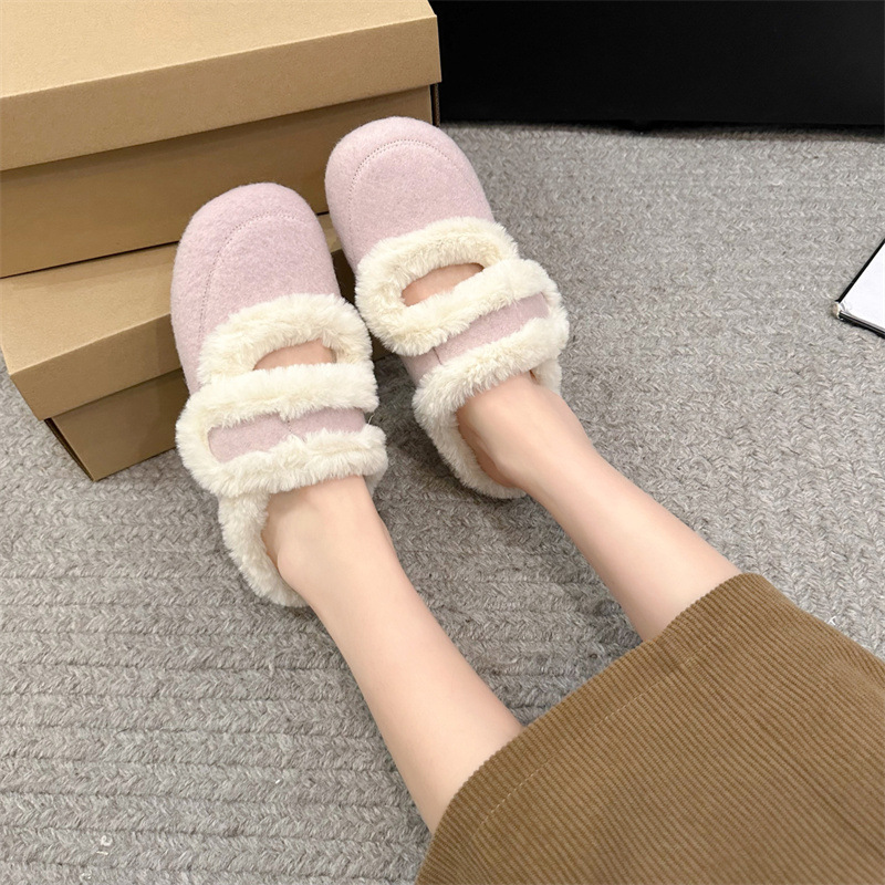 빈티지 프랑스 플랫 모피 신발 여성의 2024 새로운 가을과 겨울 외부 부드러운 바닥 샤넬 스타일 기모 버켄 스톡 코튼 신발스토어 가기