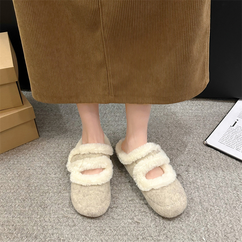 빈티지 프랑스 플랫 모피 신발 여성의 2024 새로운 가을과 겨울 외부 부드러운 바닥 샤넬 스타일 기모 버켄 스톡 코튼 신발