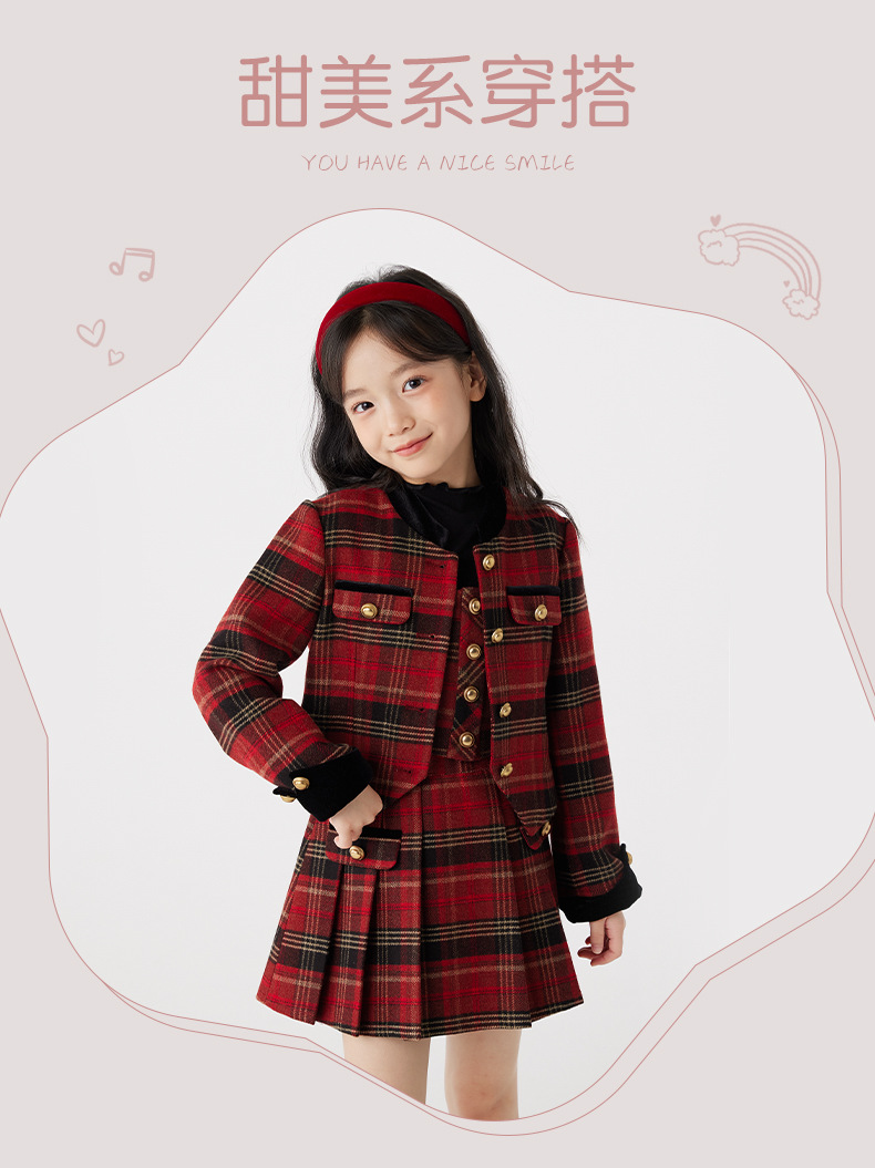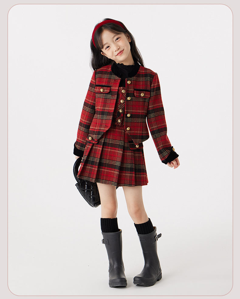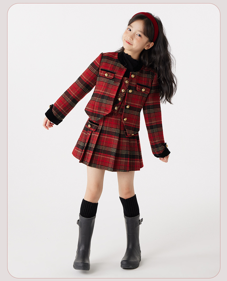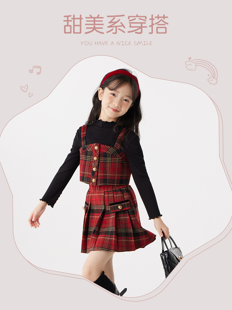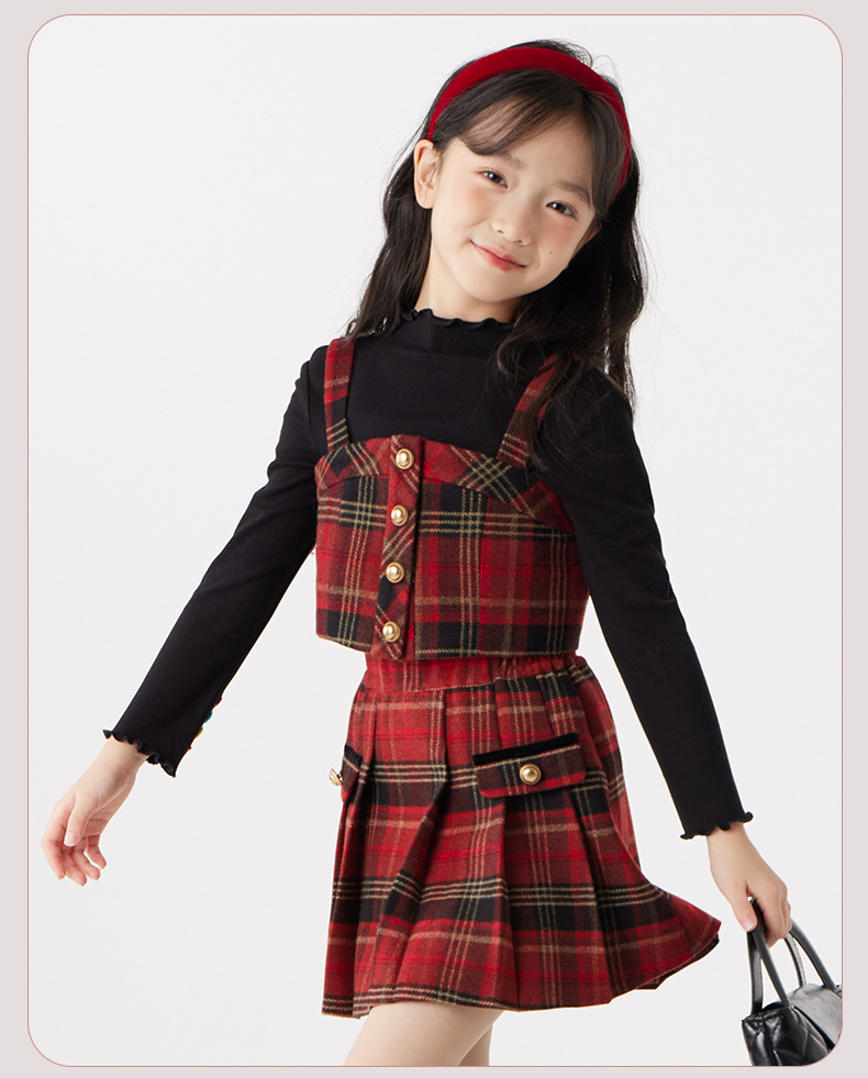 여아용 컬리지 스타일 세트 가을 겨울 2025 신상 어린 소녀용 세련된 끈탑 스커트 아동 겨울옷스토어 가기