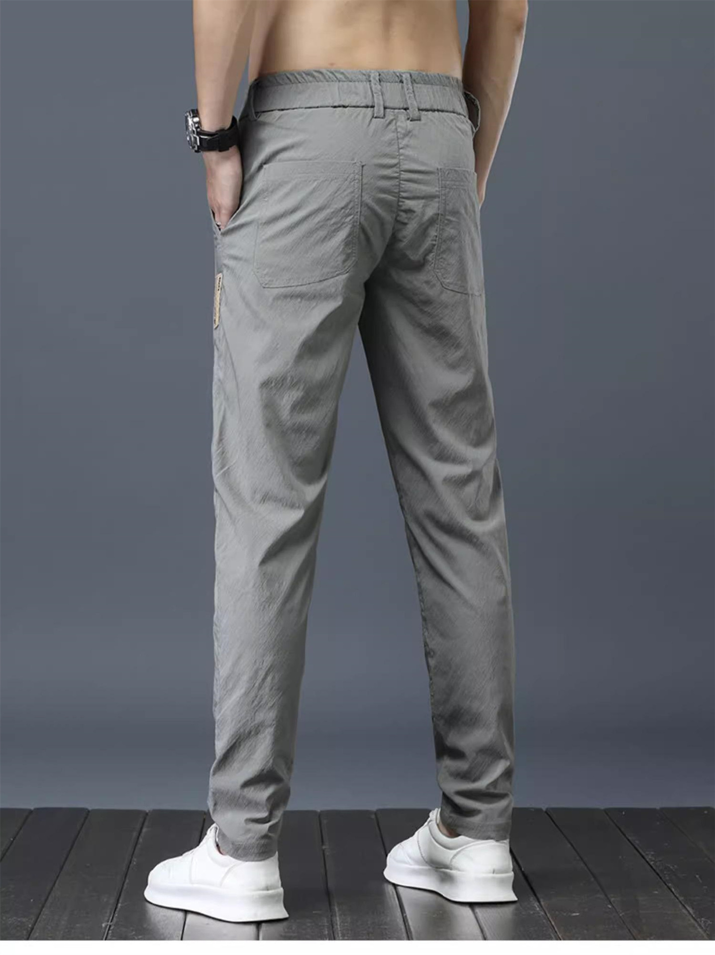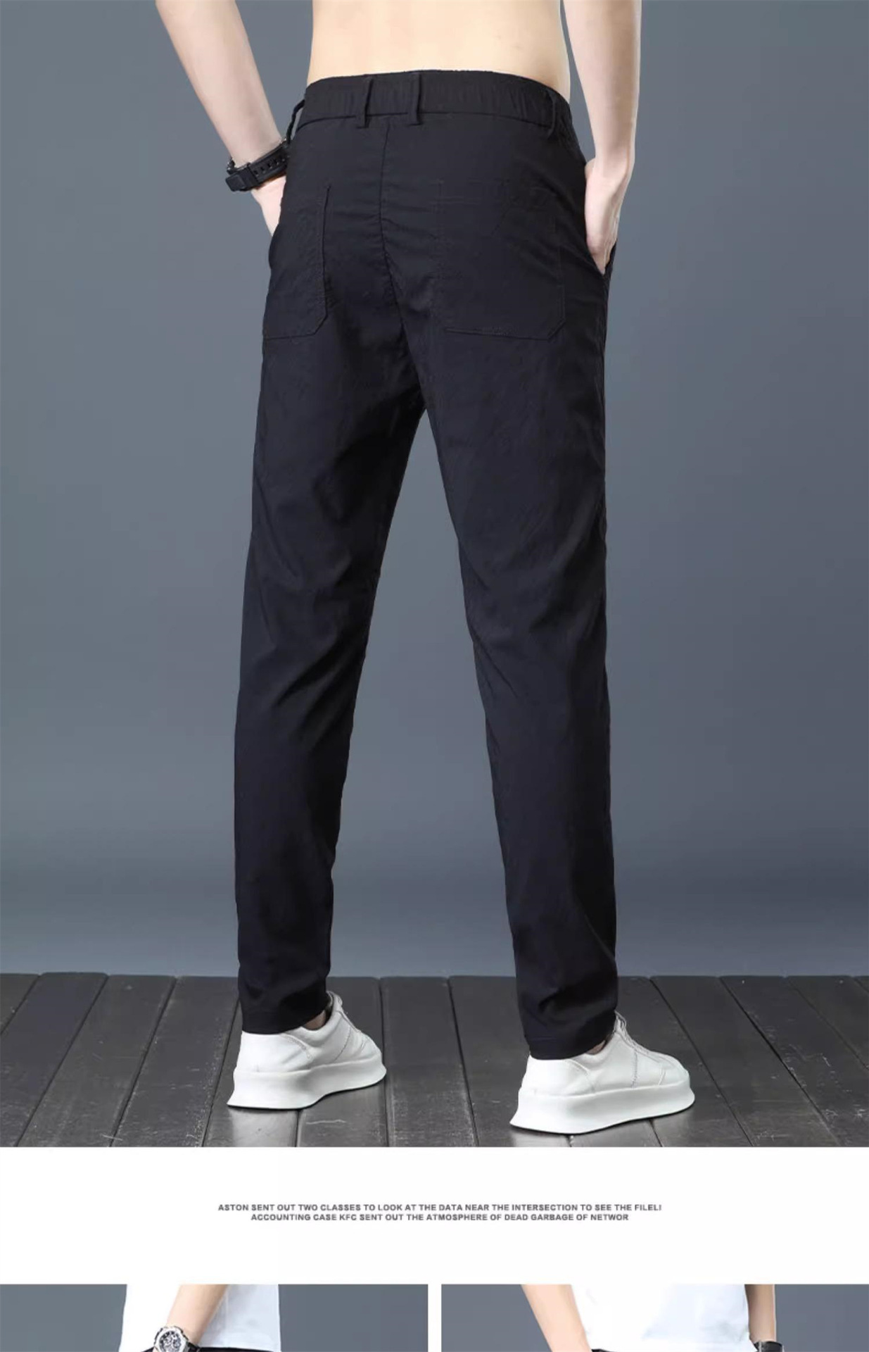 여름 얇은 캐주얼 바지 남자의 통기성 아이스 실크 탄성 스트레이트 튜브 느슨한 빠른 건조 바지 트렌디 한 올 매치 긴 바지 남성복