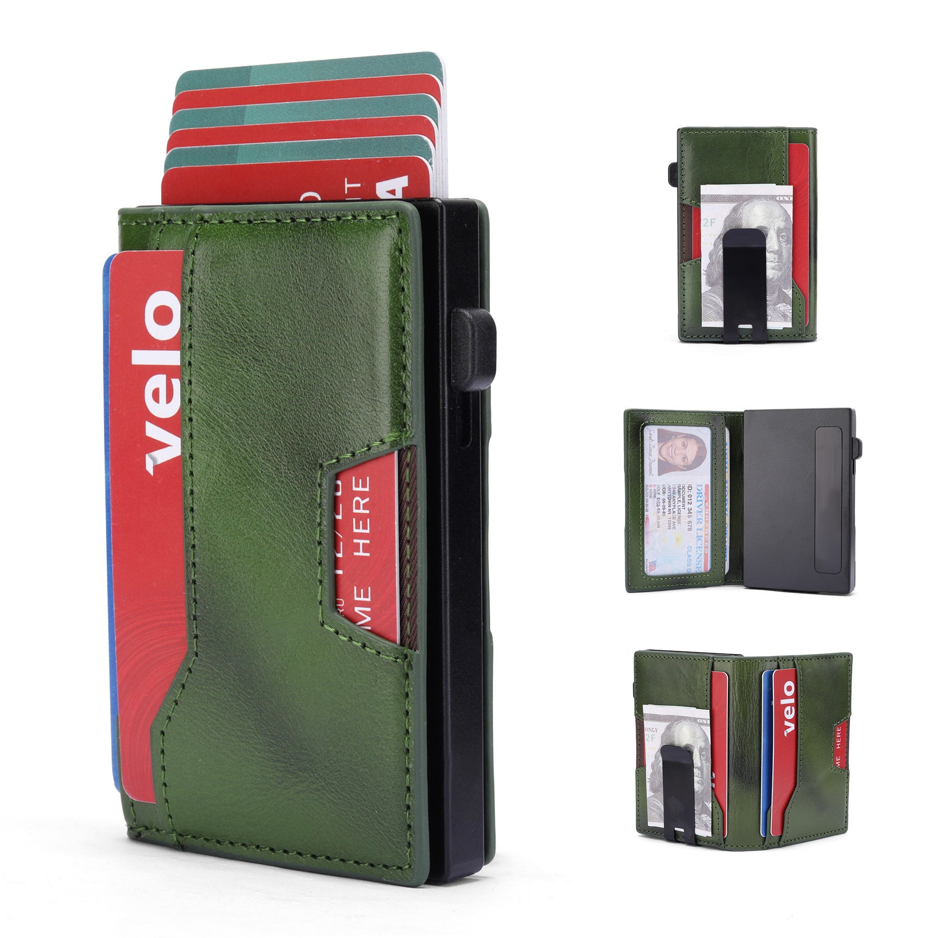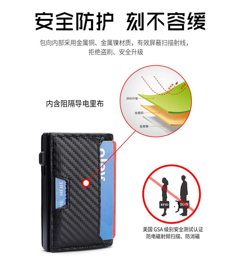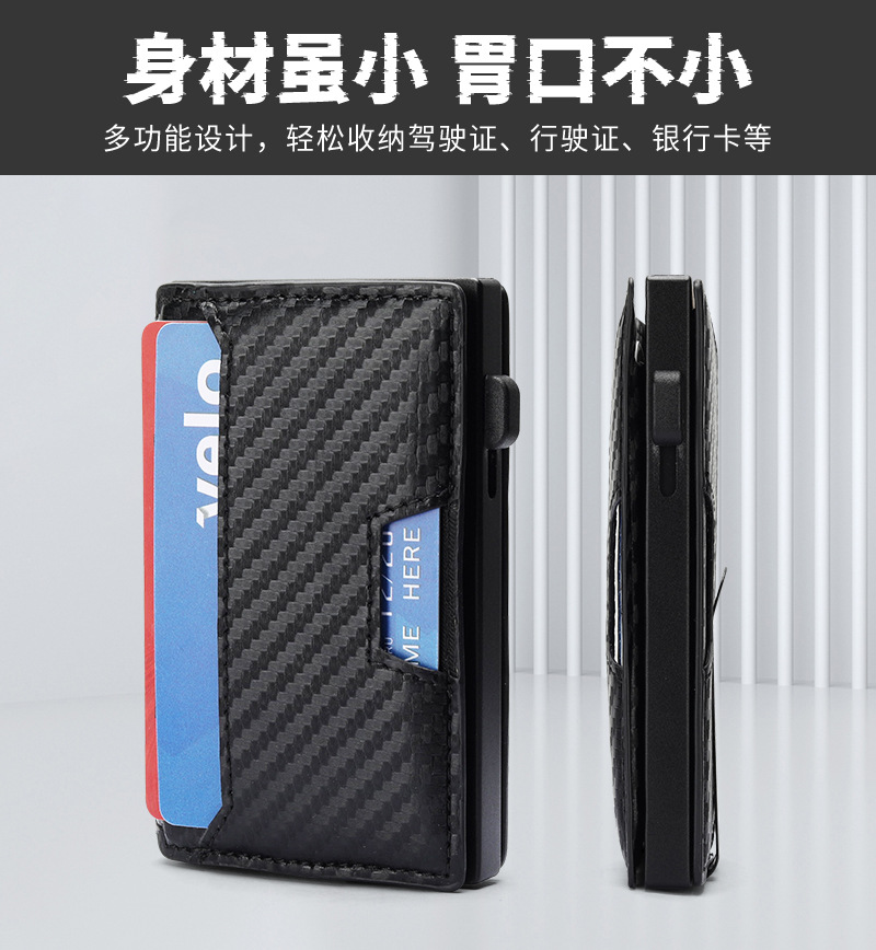 아마존 다기능 알루미늄 합금 카드 가방 탄소 섬유 도난 방지 브러시 머니 클립 RFID 차폐 가죽 남성용 지갑