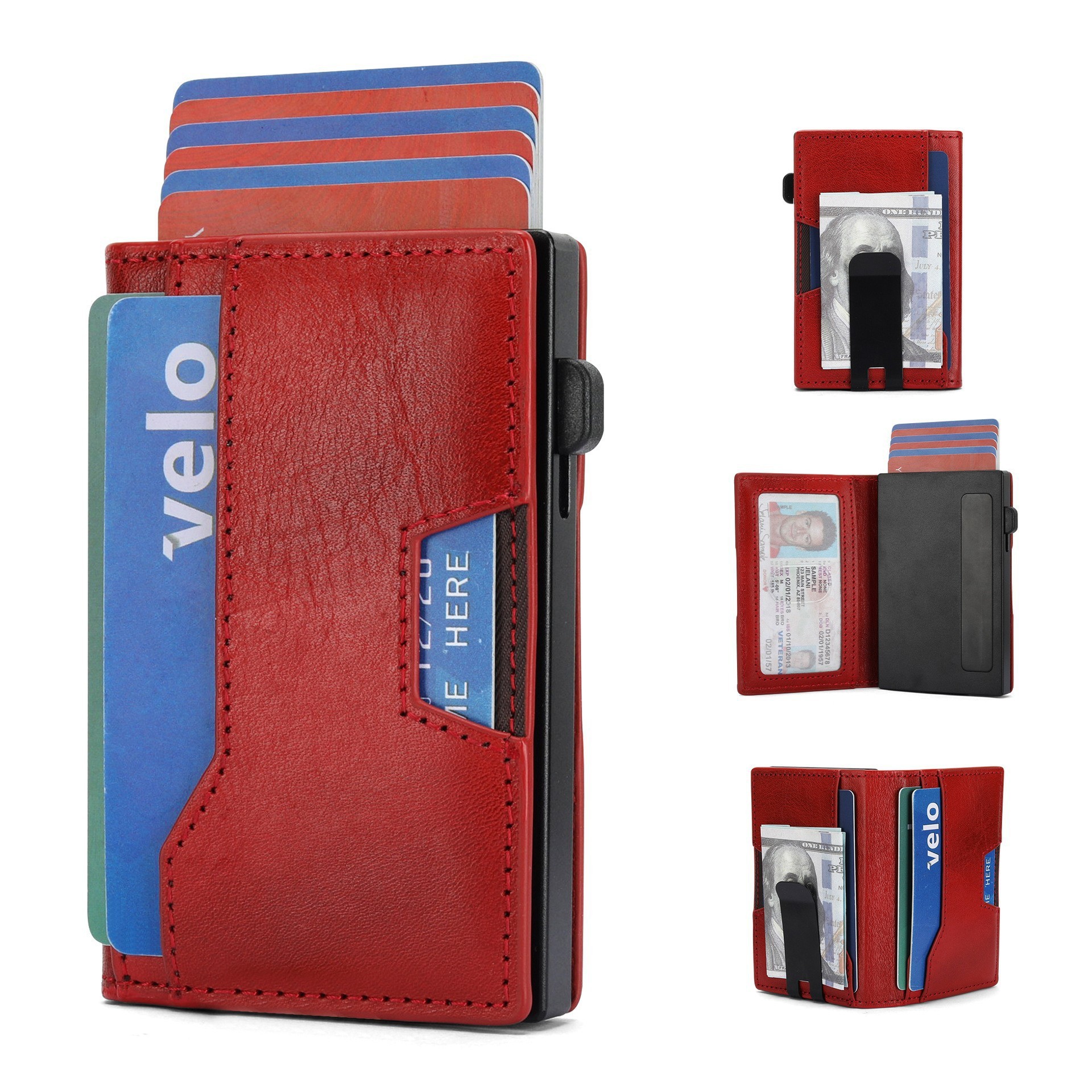 아마존 다기능 알루미늄 합금 카드 가방 탄소 섬유 도난 방지 브러시 머니 클립 RFID 차폐 가죽 남성용 지갑스토어 가기