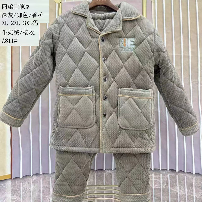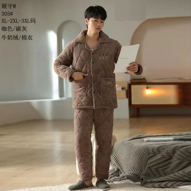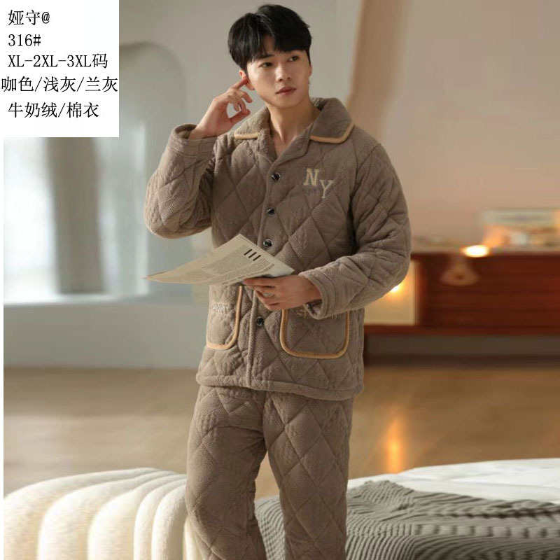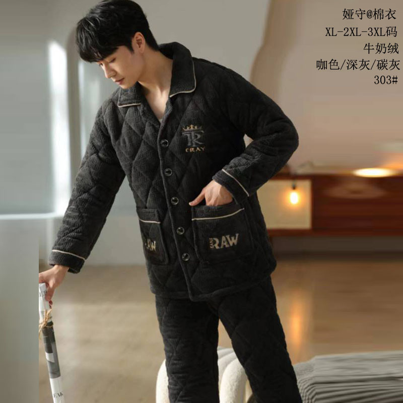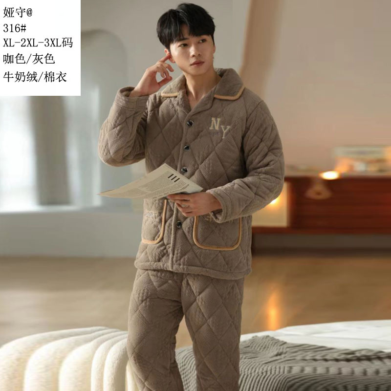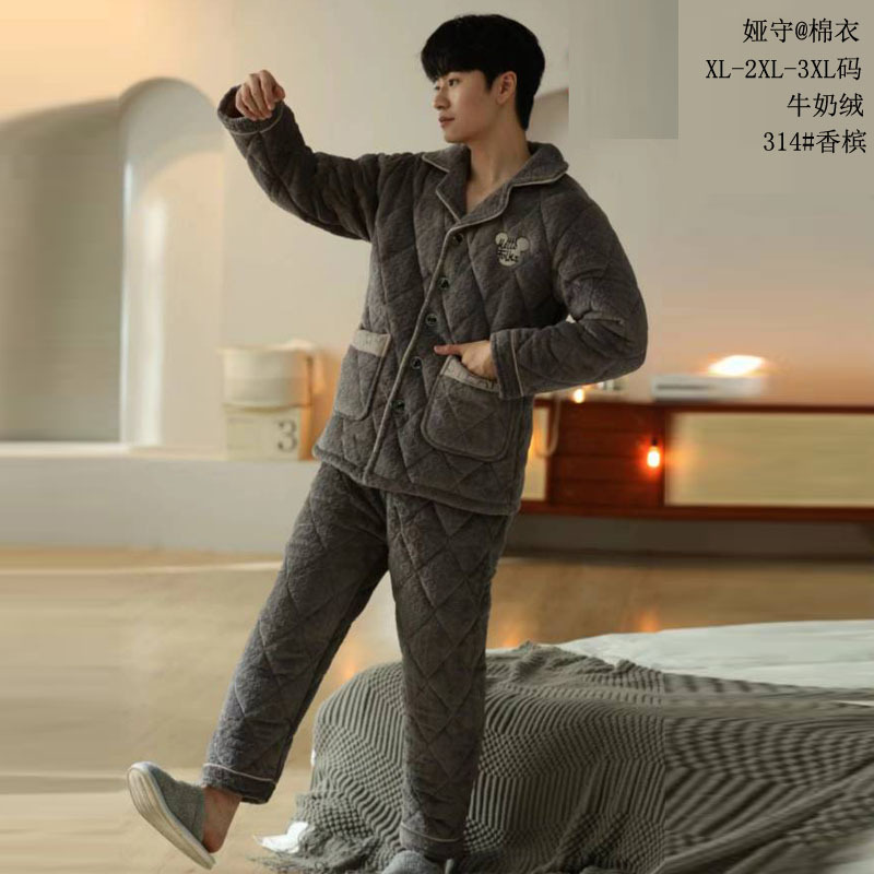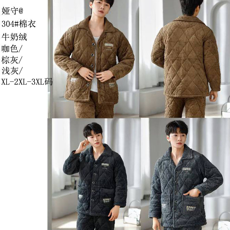 밀크 벨벳 남성용 면화 옷 Yashou 2024 새로운 겨울 퀼트 남성 외부 착용 홈 의류 겨울 따뜻한 면화 옷스토어 가기