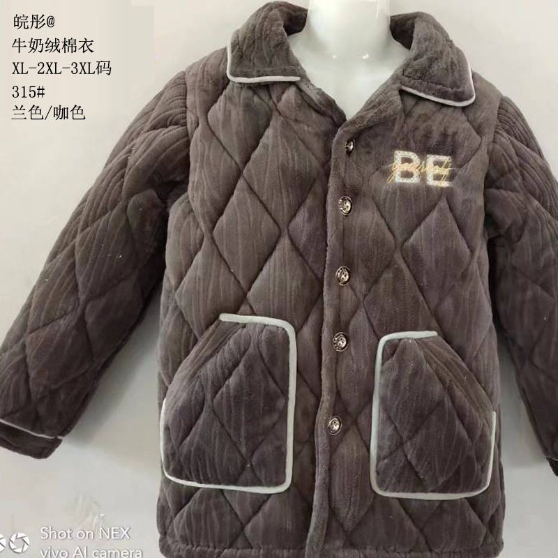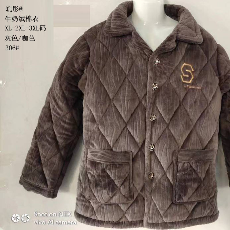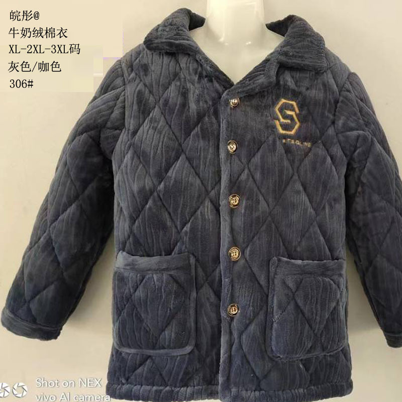 밀크 벨벳 남성용 면화 옷 Yashou 2024 새로운 겨울 퀼트 남성 외부 착용 홈 의류 겨울 따뜻한 면화 옷