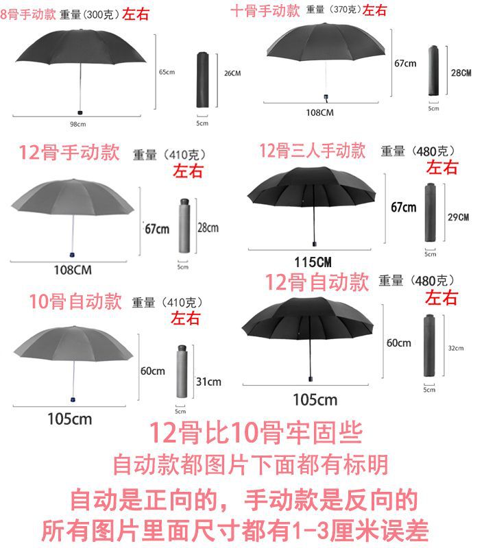 Ten-Bone 초대형 우산 대형 접히는 단단한 우산 여성의 맑고 비오는 우산 검은 색 고무 선 스크린 햇살 우산 Sun Lei Red스토어 가기