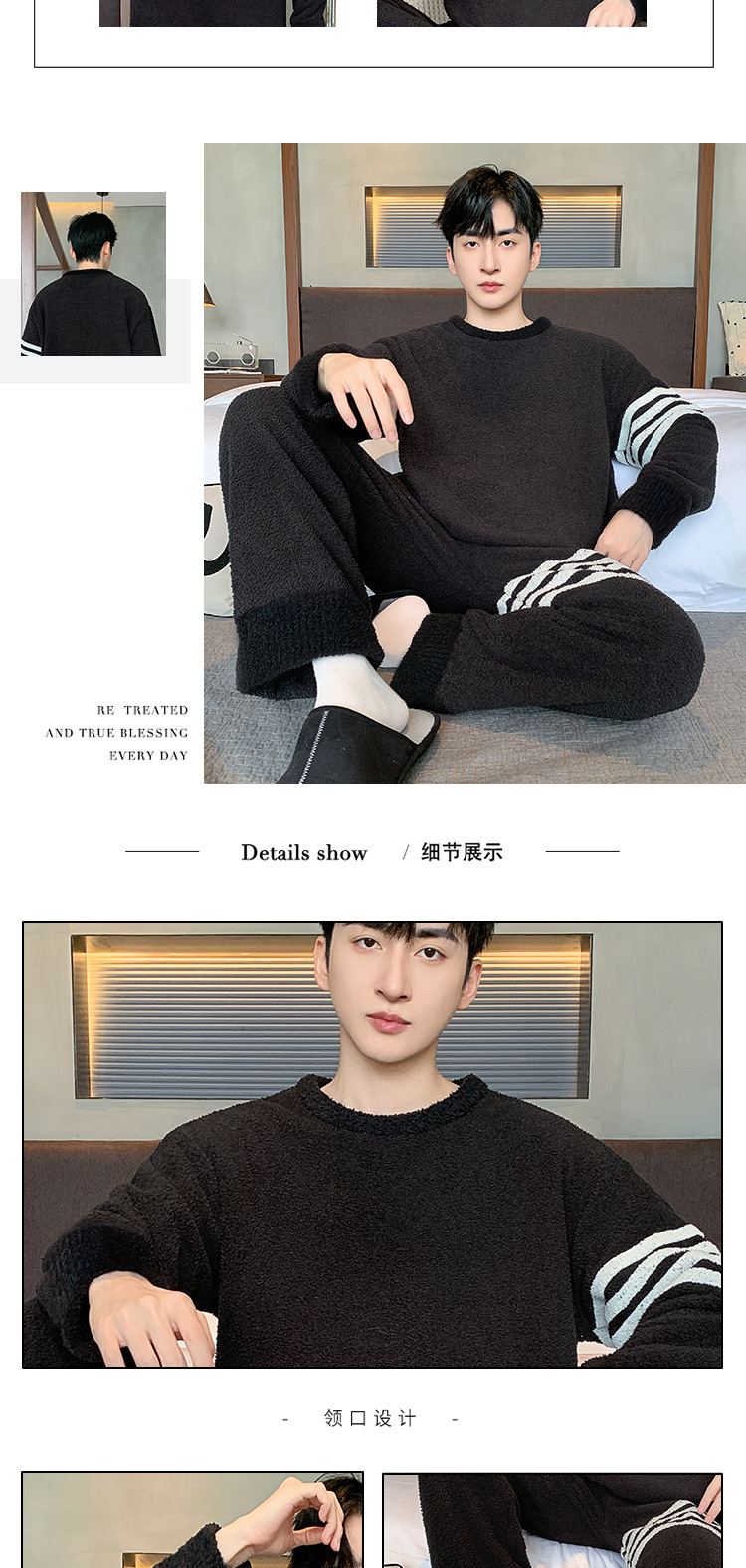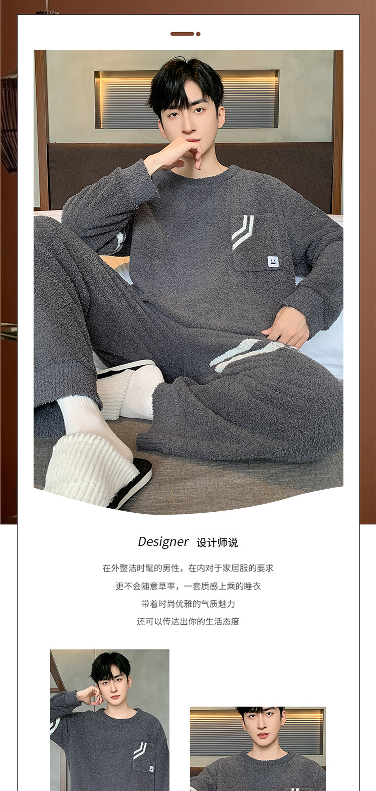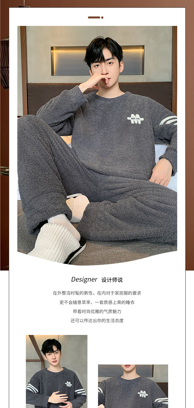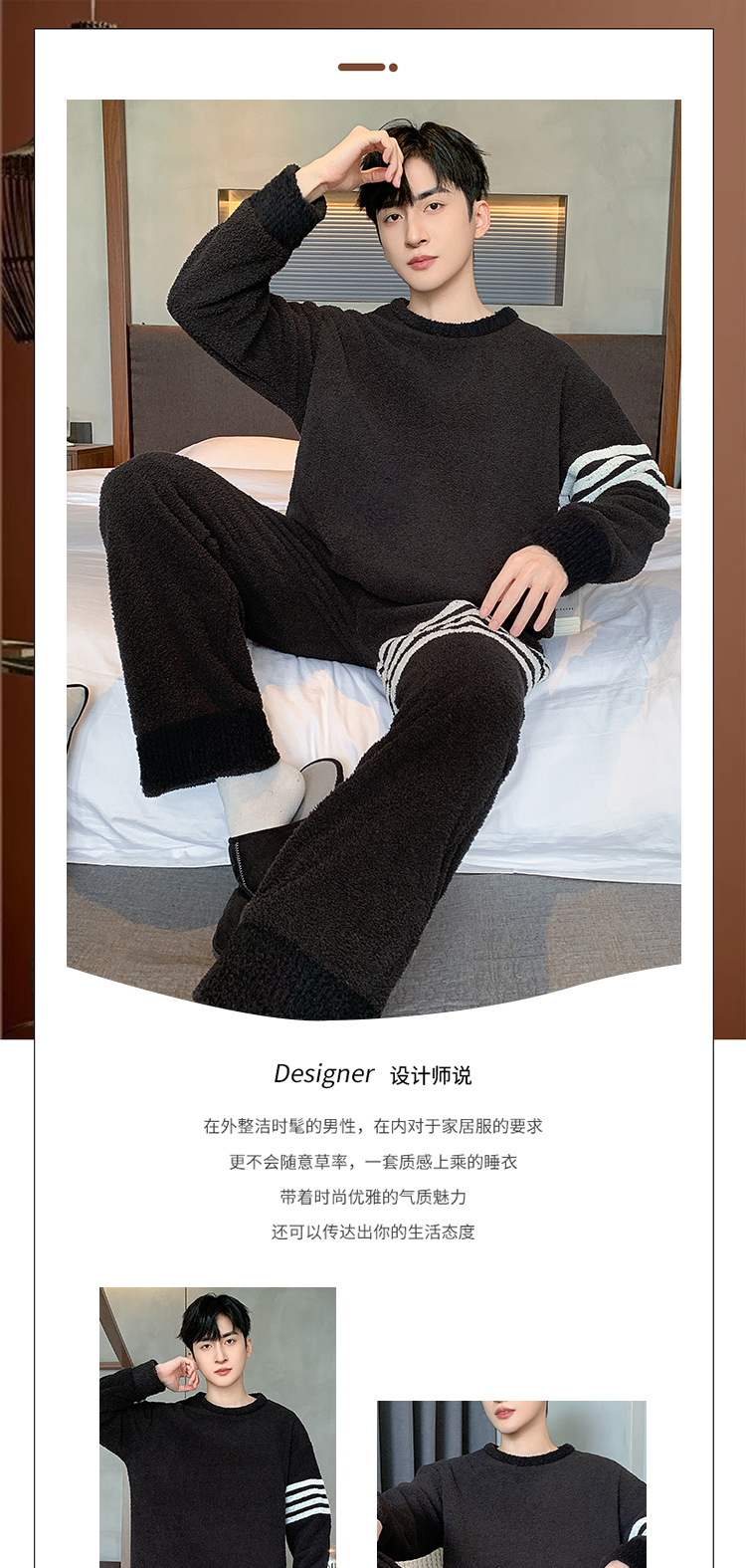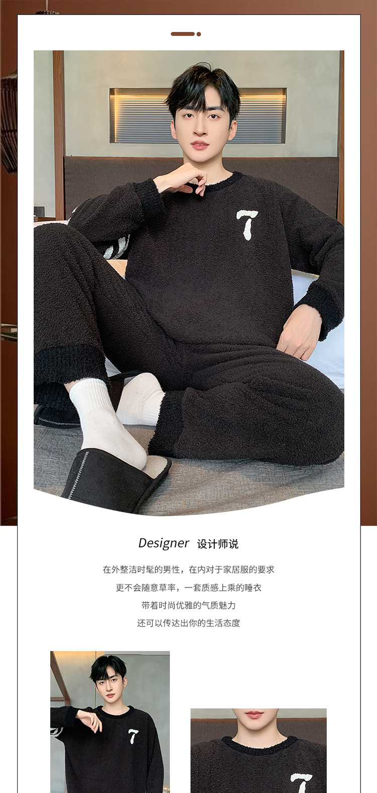 [소프트 하프 벨벳] 남자 잠옷 가을과 겨울 느슨한 두꺼운 산호 양털 가정 옷은 세트 입을 수 있습니다스토어 가기
