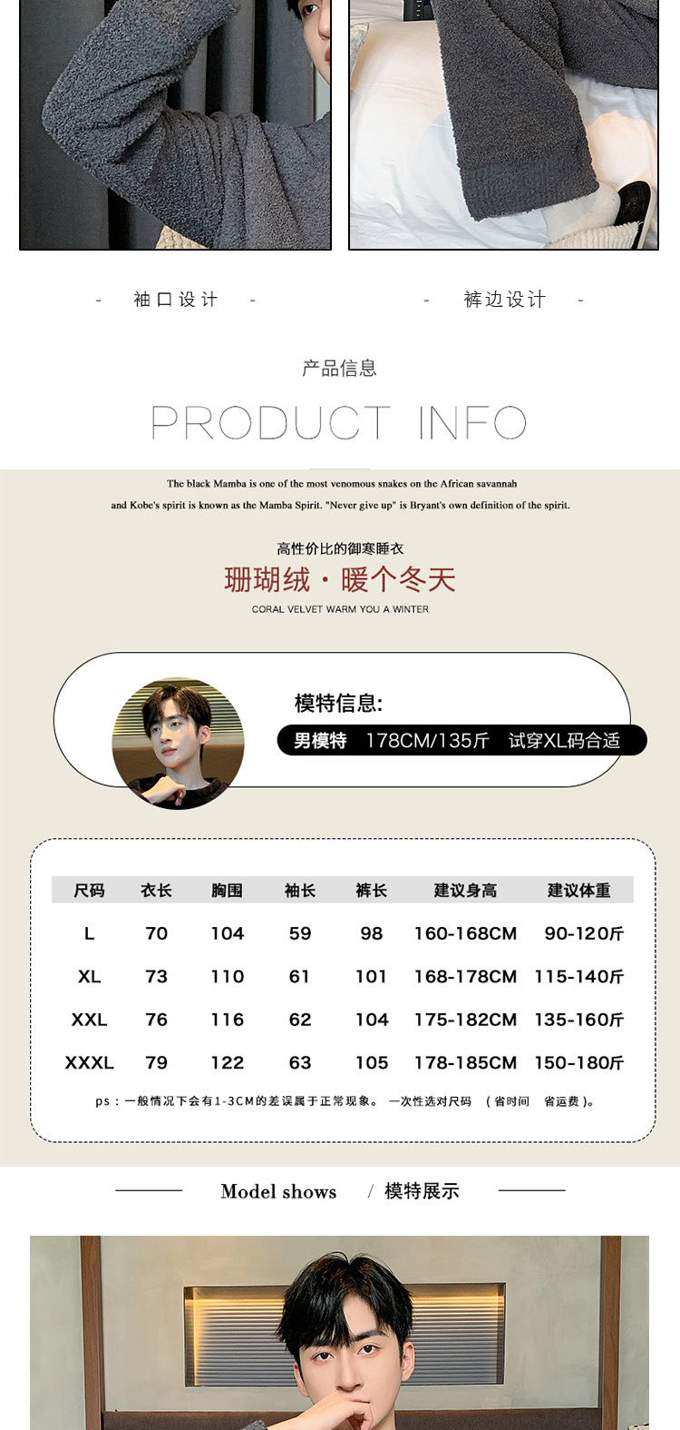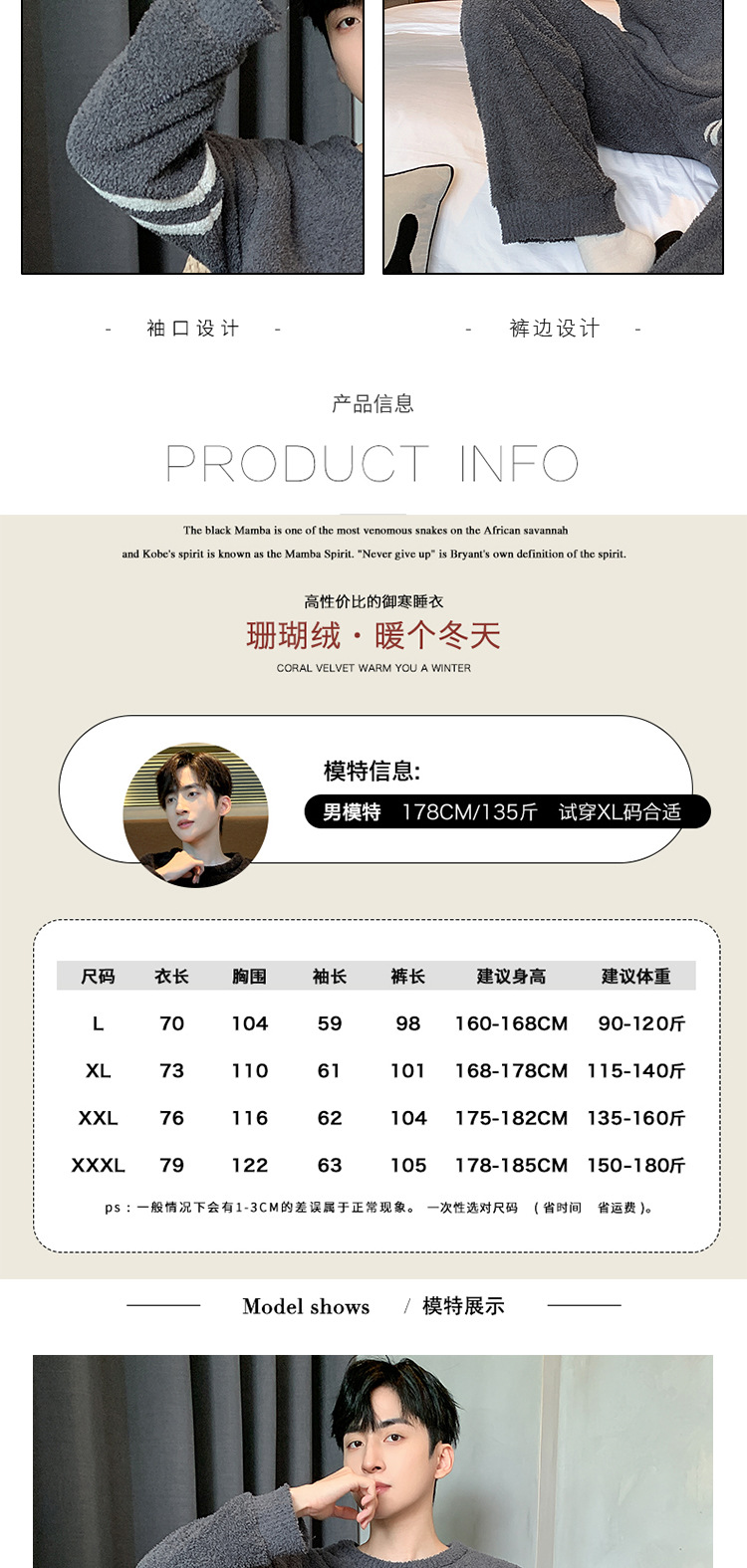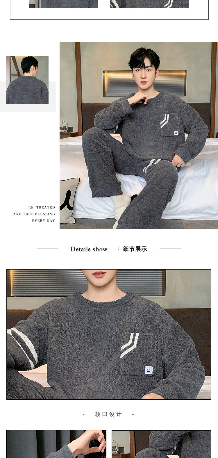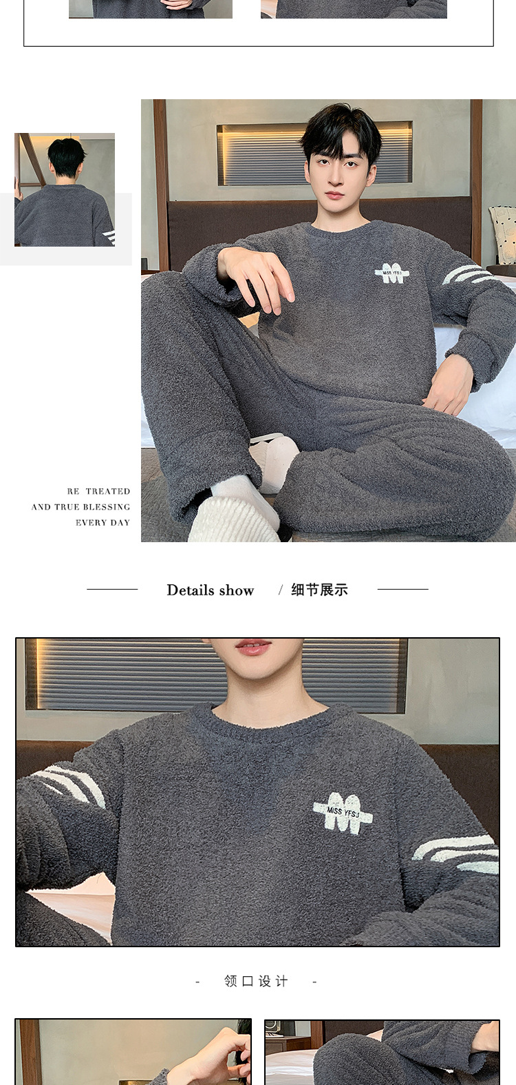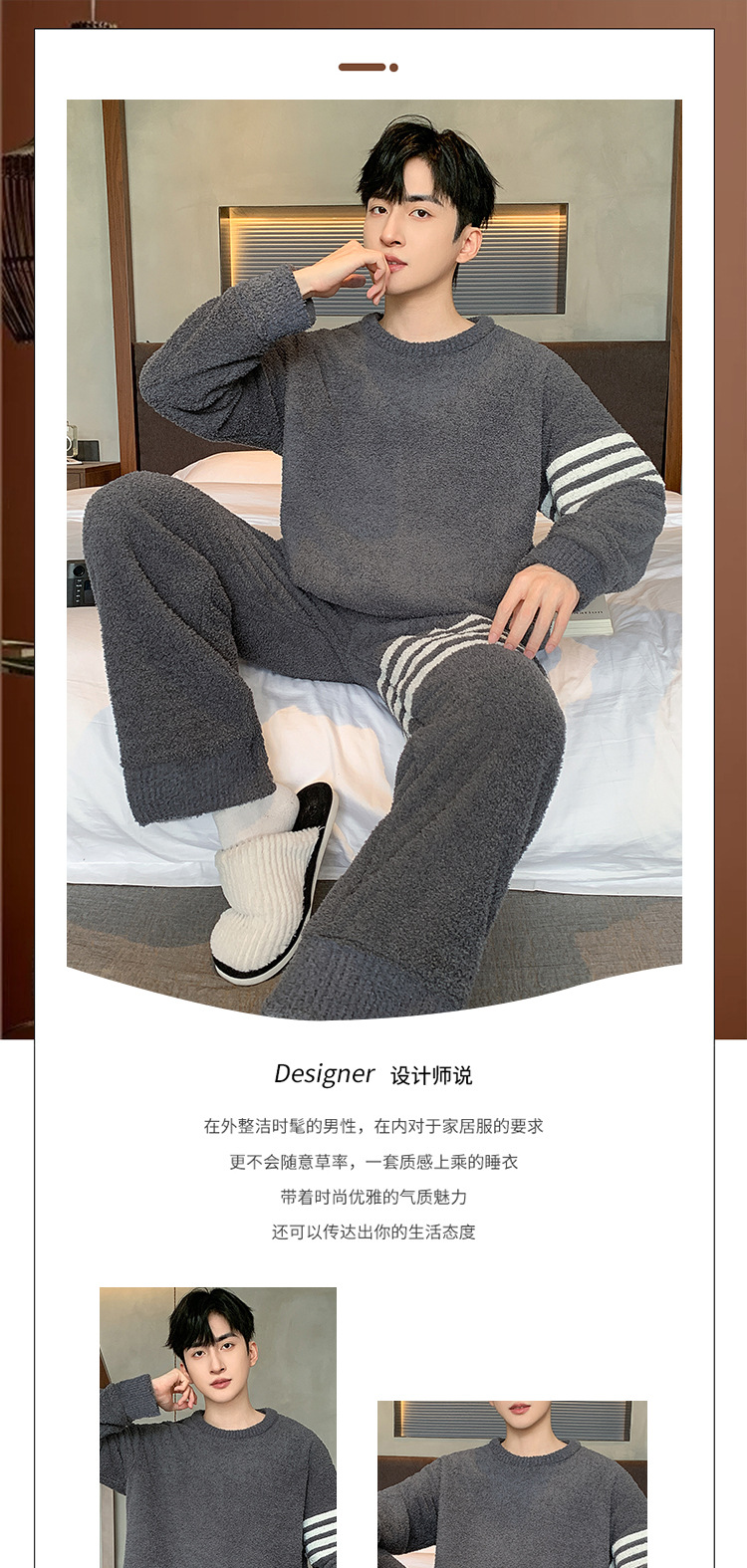 [소프트 하프 벨벳] 남자 잠옷 가을과 겨울 느슨한 두꺼운 산호 양털 가정 옷은 세트 입을 수 있습니다스토어 가기