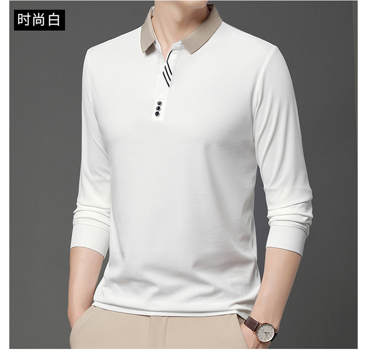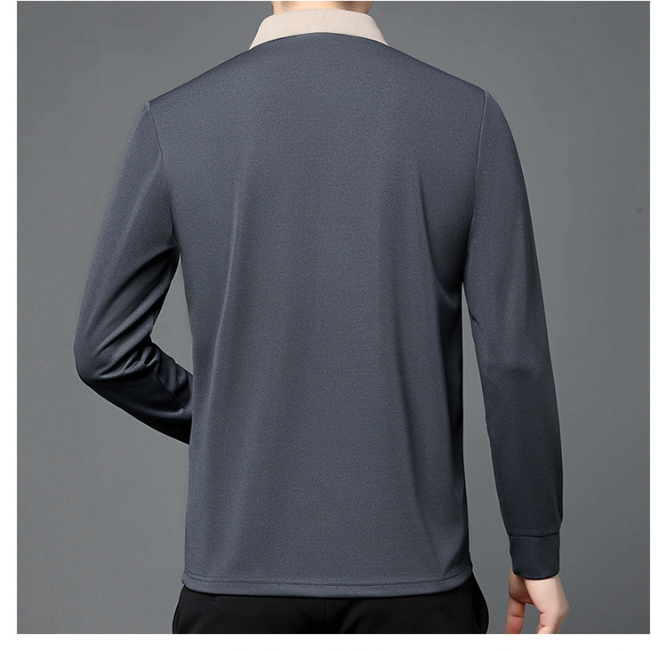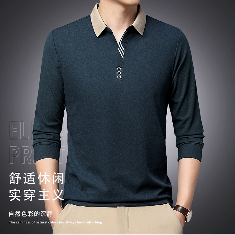 봄과 가을 새로운 가위 칼라 긴 소매 폴로 셔츠 남성용 비즈니스 캐주얼 베이스 셔츠 솔리드 컬러 라 티셔츠 남성복