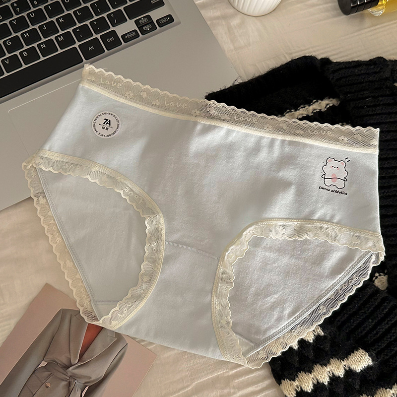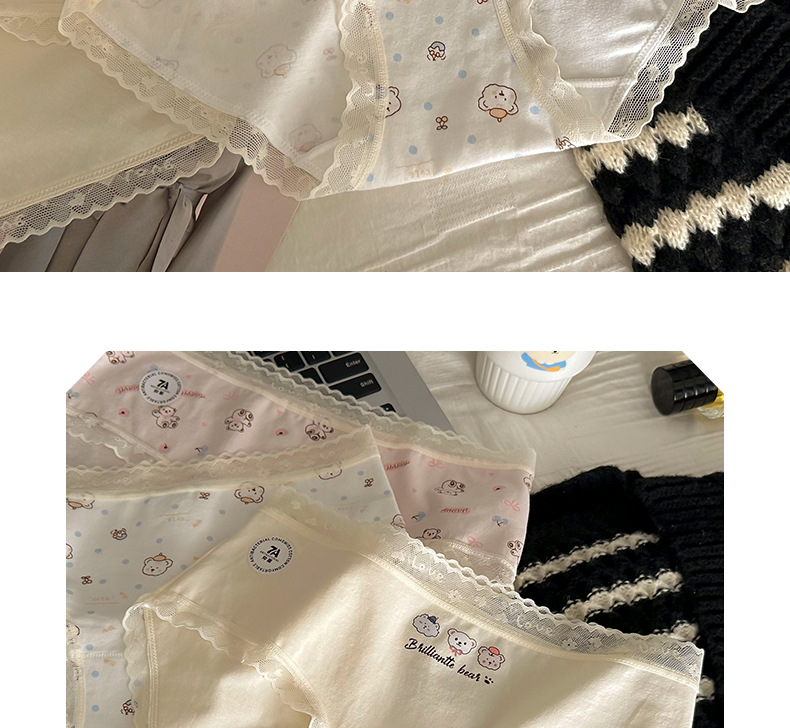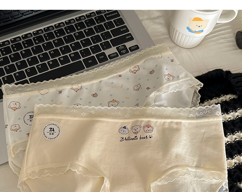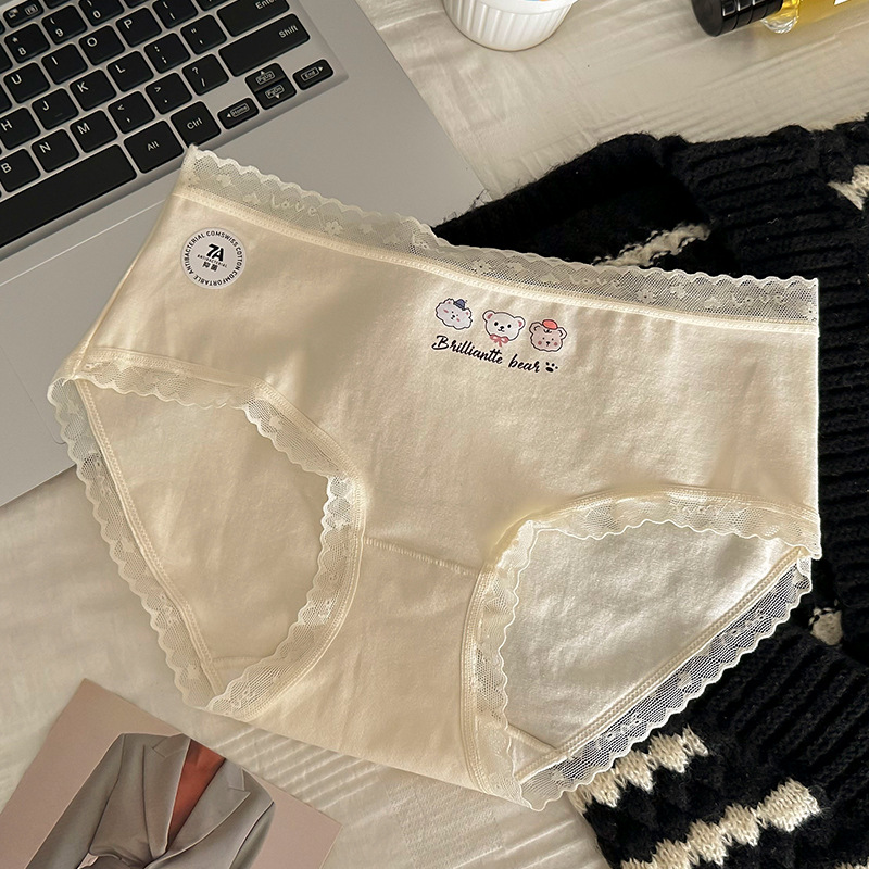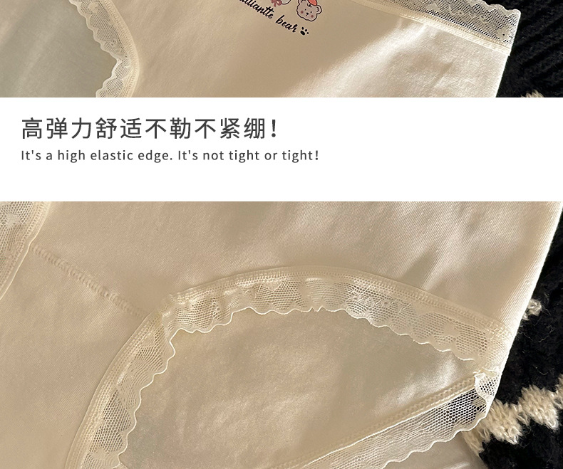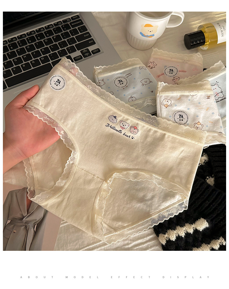 부드럽고 Waxy 7A 항균 풀 프린트 베어 달콤하고 우스꽝스러운 피부 친화적 인 순면 속옷 여성 학생 브리프