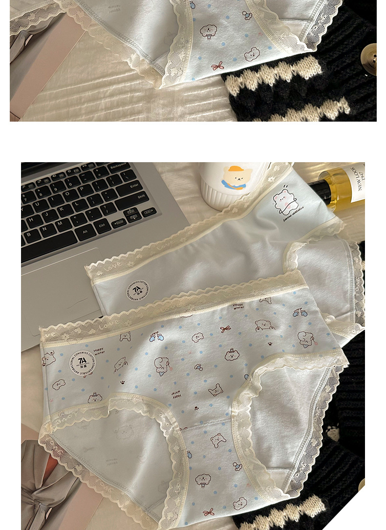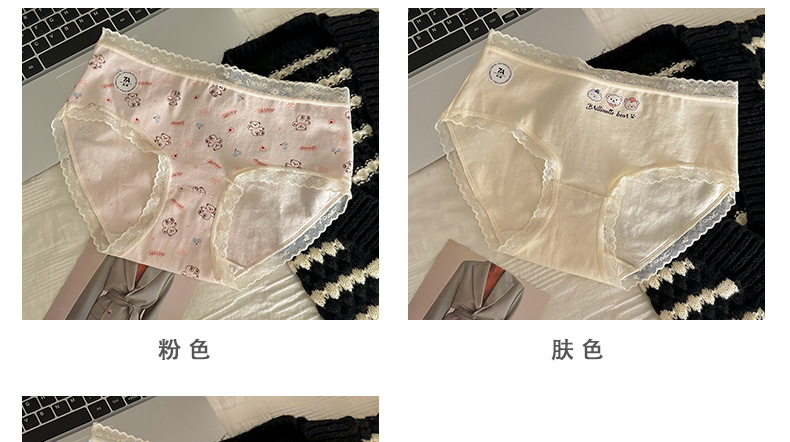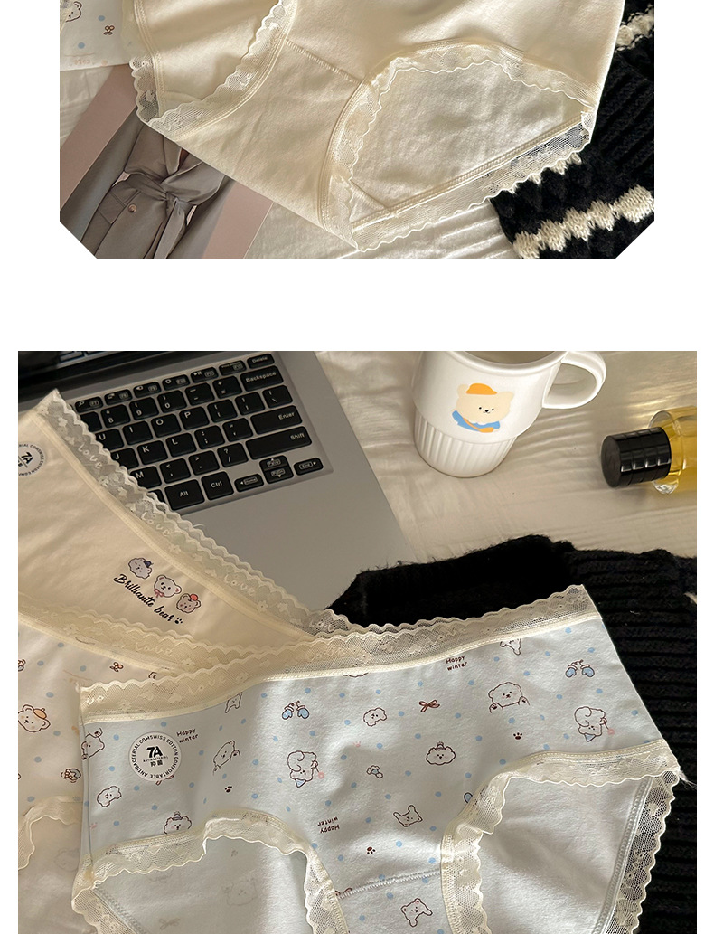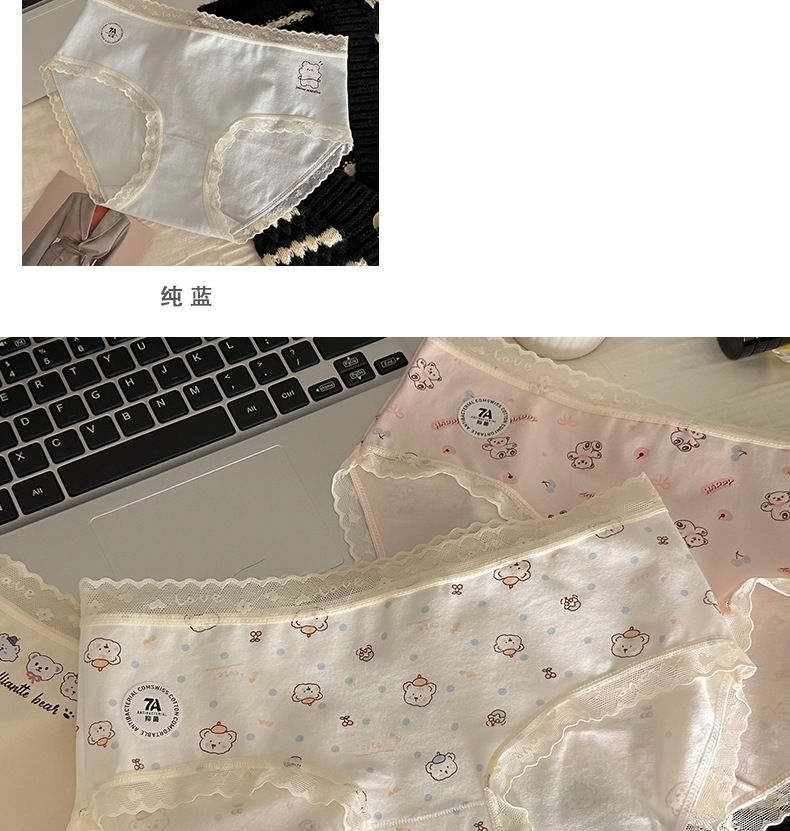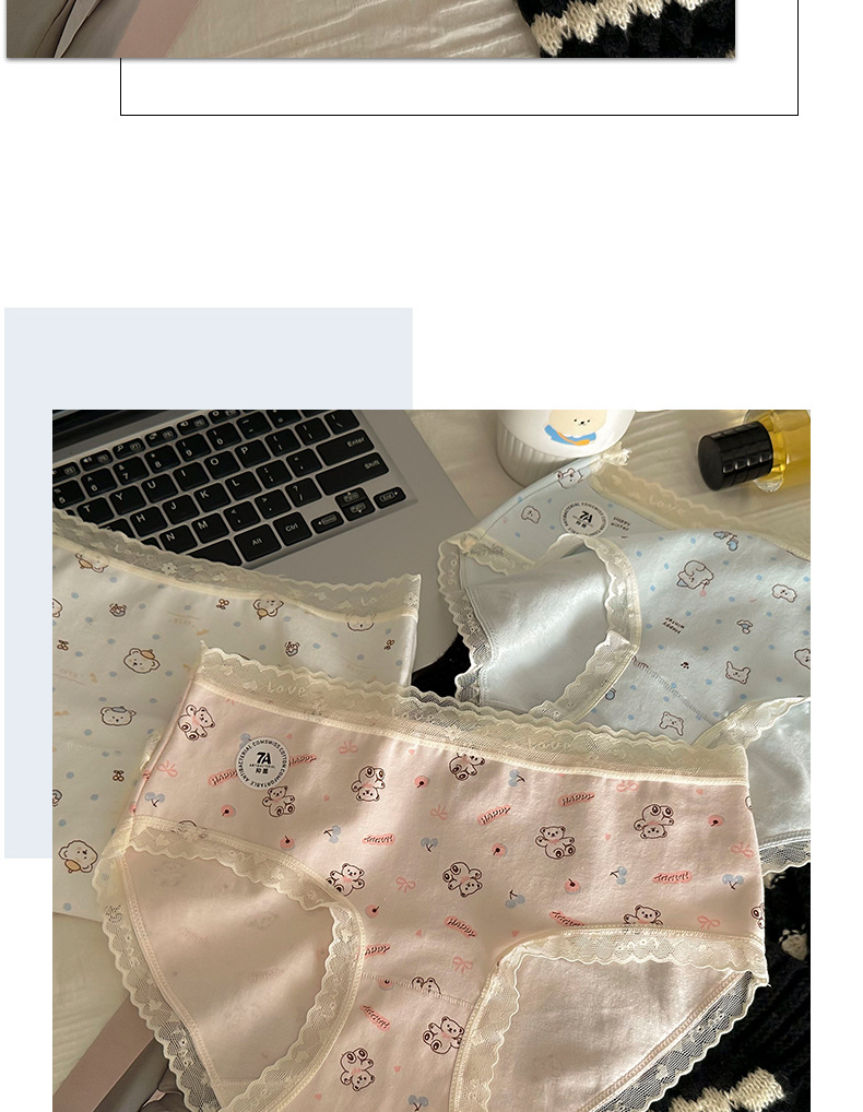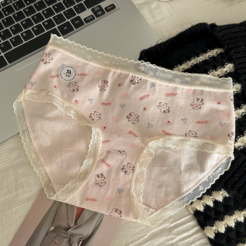 부드럽고 Waxy 7A 항균 풀 프린트 베어 달콤하고 우스꽝스러운 피부 친화적 인 순면 속옷 여성 학생 브리프스토어 가기