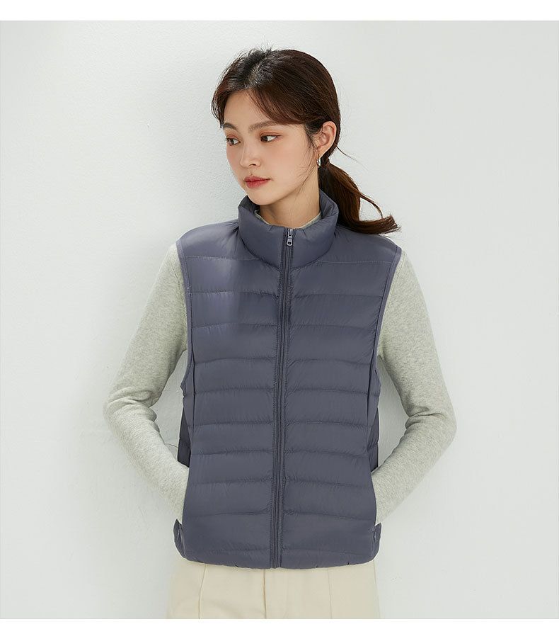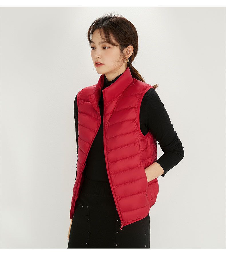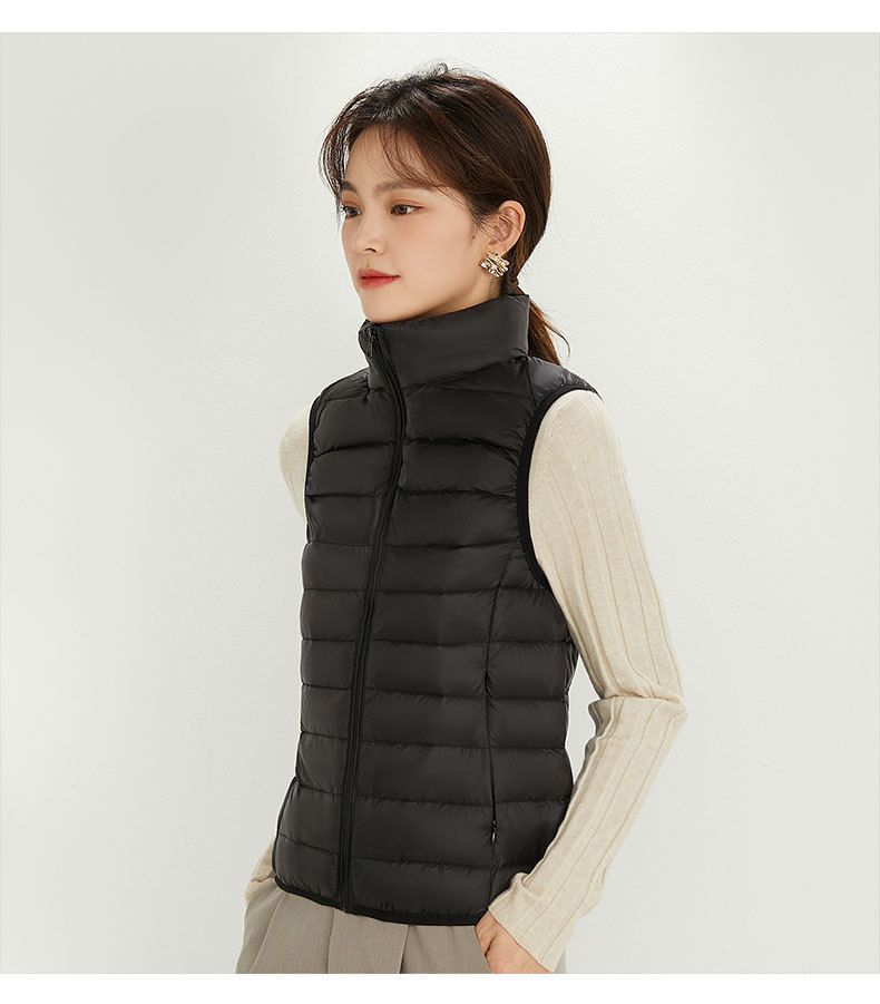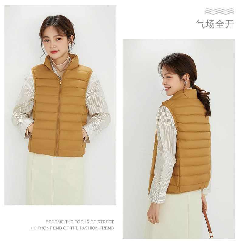 가을, 겨울 새로운 얇은 다운 재킷 여성 캐주얼 다운 조끼 패션 양복 조끼 스탠드 업 칼라 양복 조끼 얇은 조끼 재킷