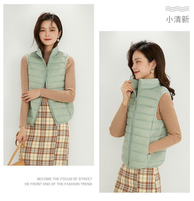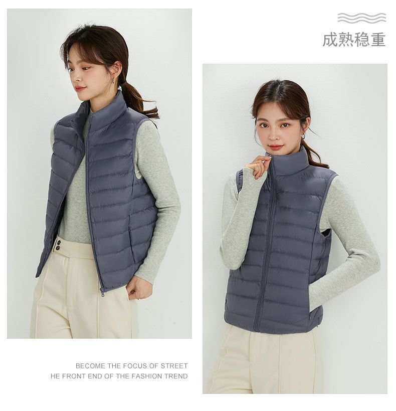 가을, 겨울 새로운 얇은 다운 재킷 여성 캐주얼 다운 조끼 패션 양복 조끼 스탠드 업 칼라 양복 조끼 얇은 조끼 재킷스토어 가기