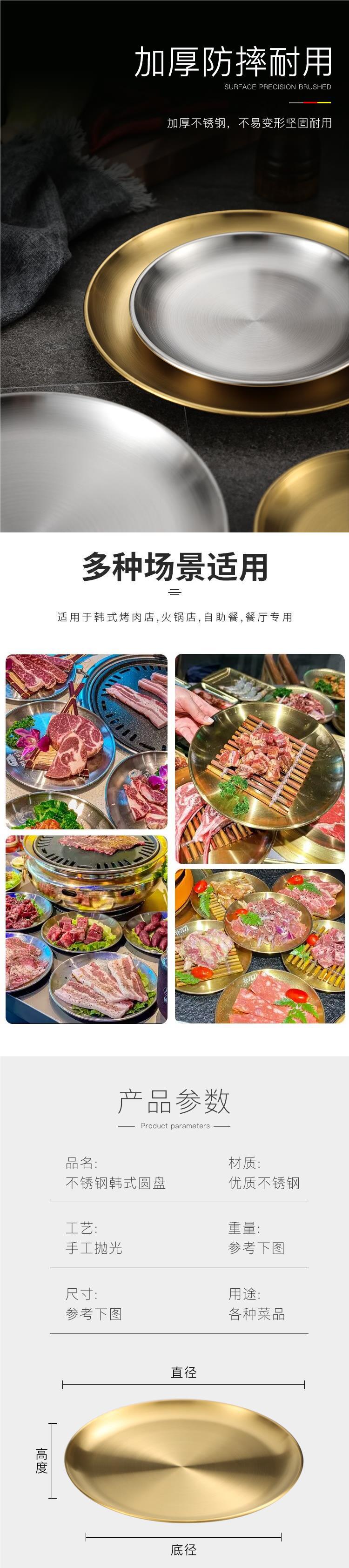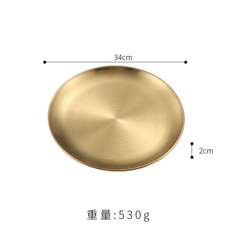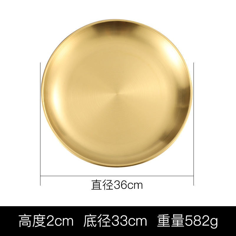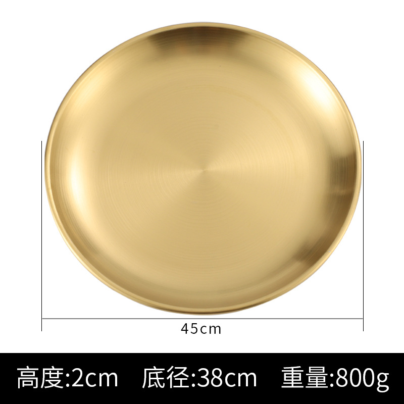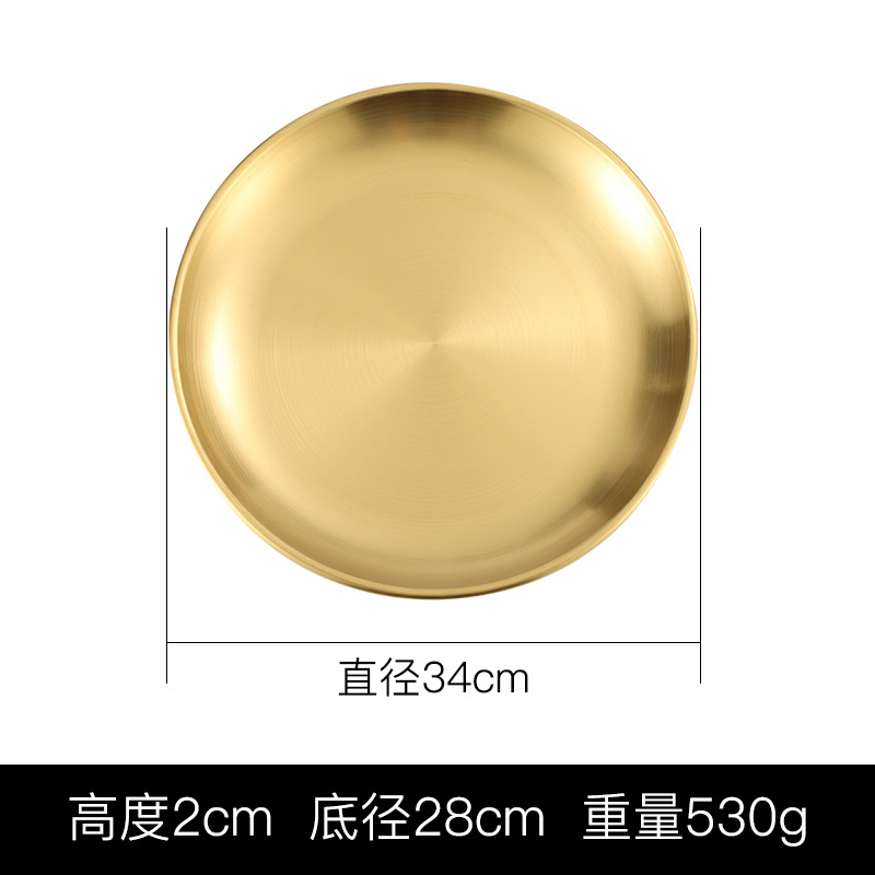 한국식 304 스테인레스 스틸 디스크 상업용 황금 바베큐 플레이트 트레이 과일 케이크 접시 디너 플레이트 뼈 플레이트 얕은 플레이트스토어 가기