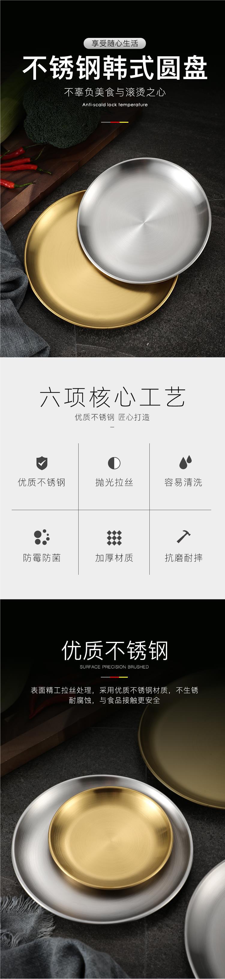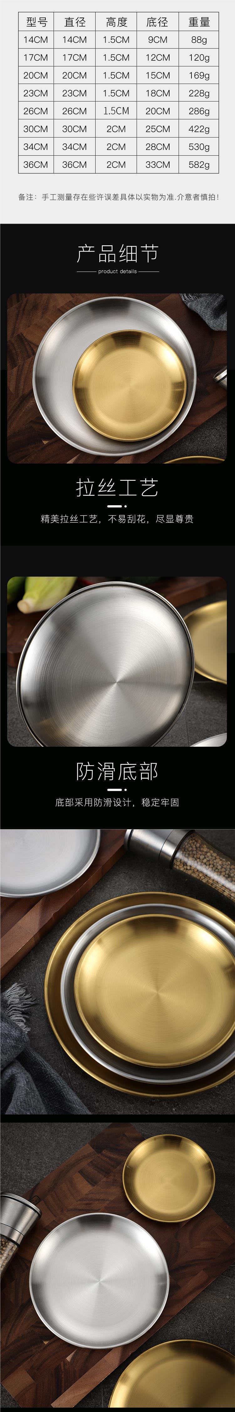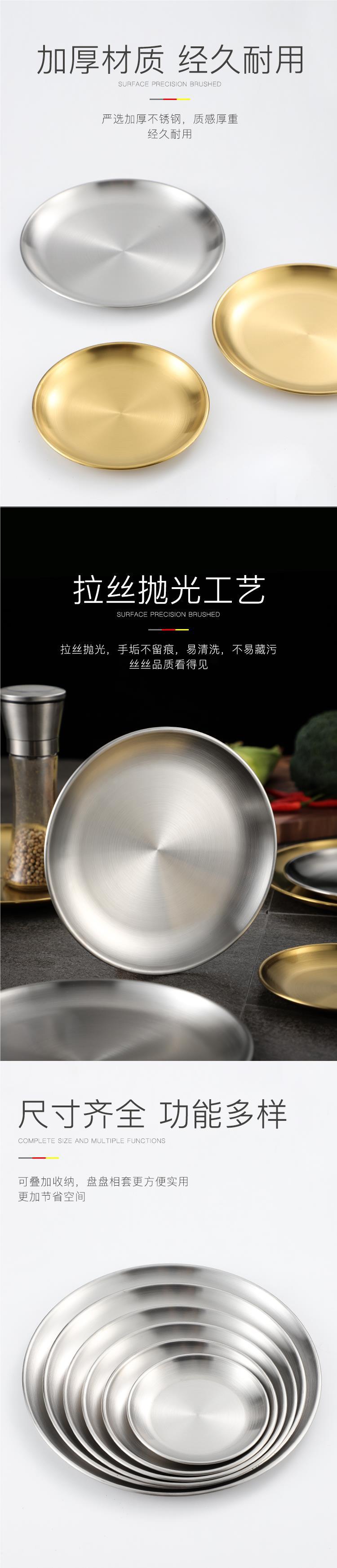 한국식 304 스테인레스 스틸 디스크 상업용 황금 바베큐 플레이트 트레이 과일 케이크 접시 디너 플레이트 뼈 플레이트 얕은 플레이트스토어 가기