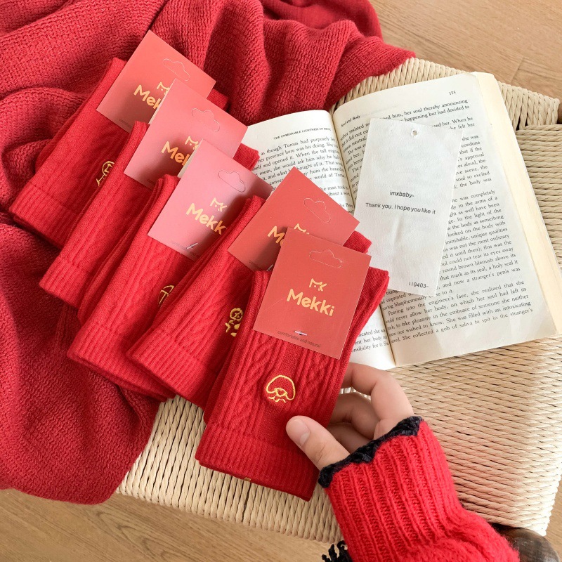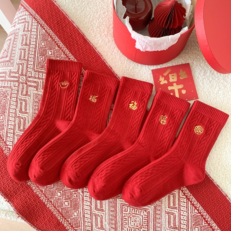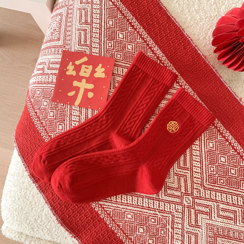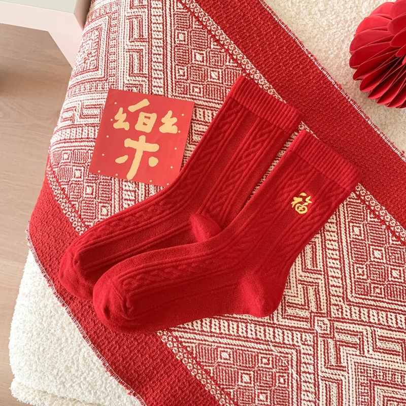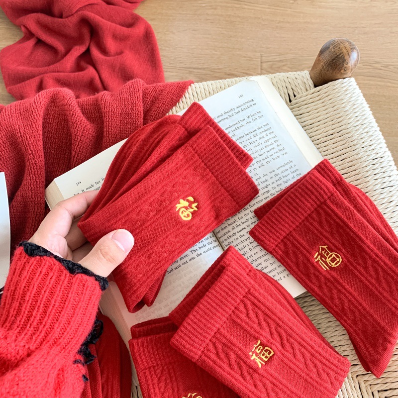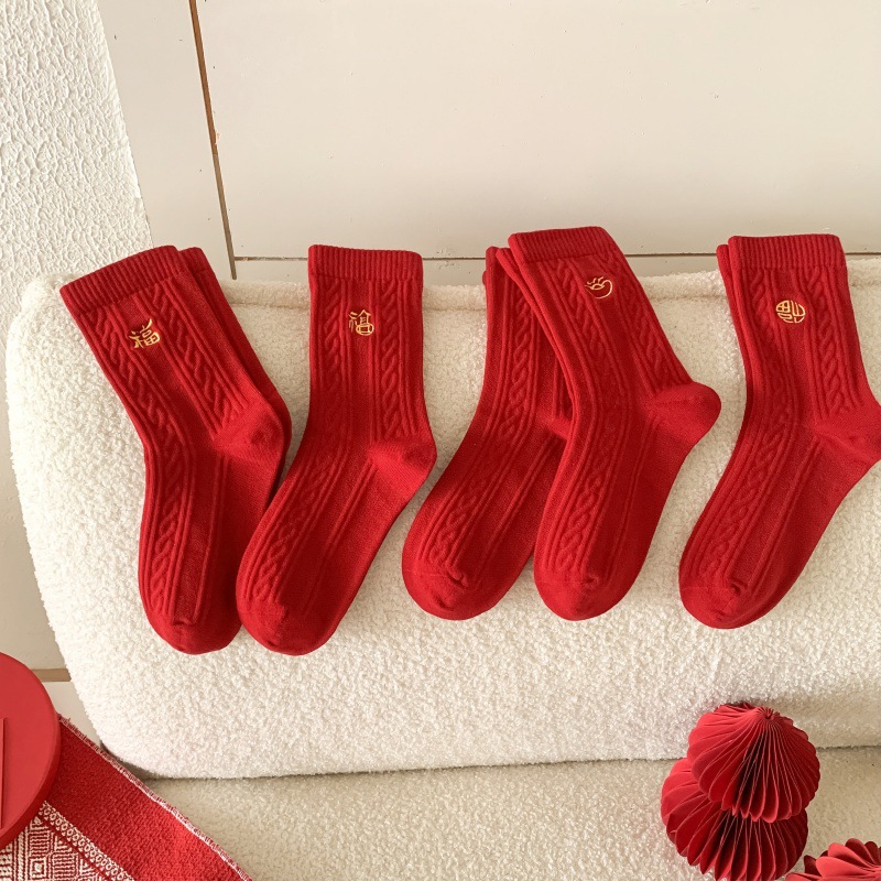 축복받은 빨간 양말 여성용 중간 길이 양말 24 가을 겨울 축제 웨딩 커플 양말 빗질면 스타킹스토어 가기