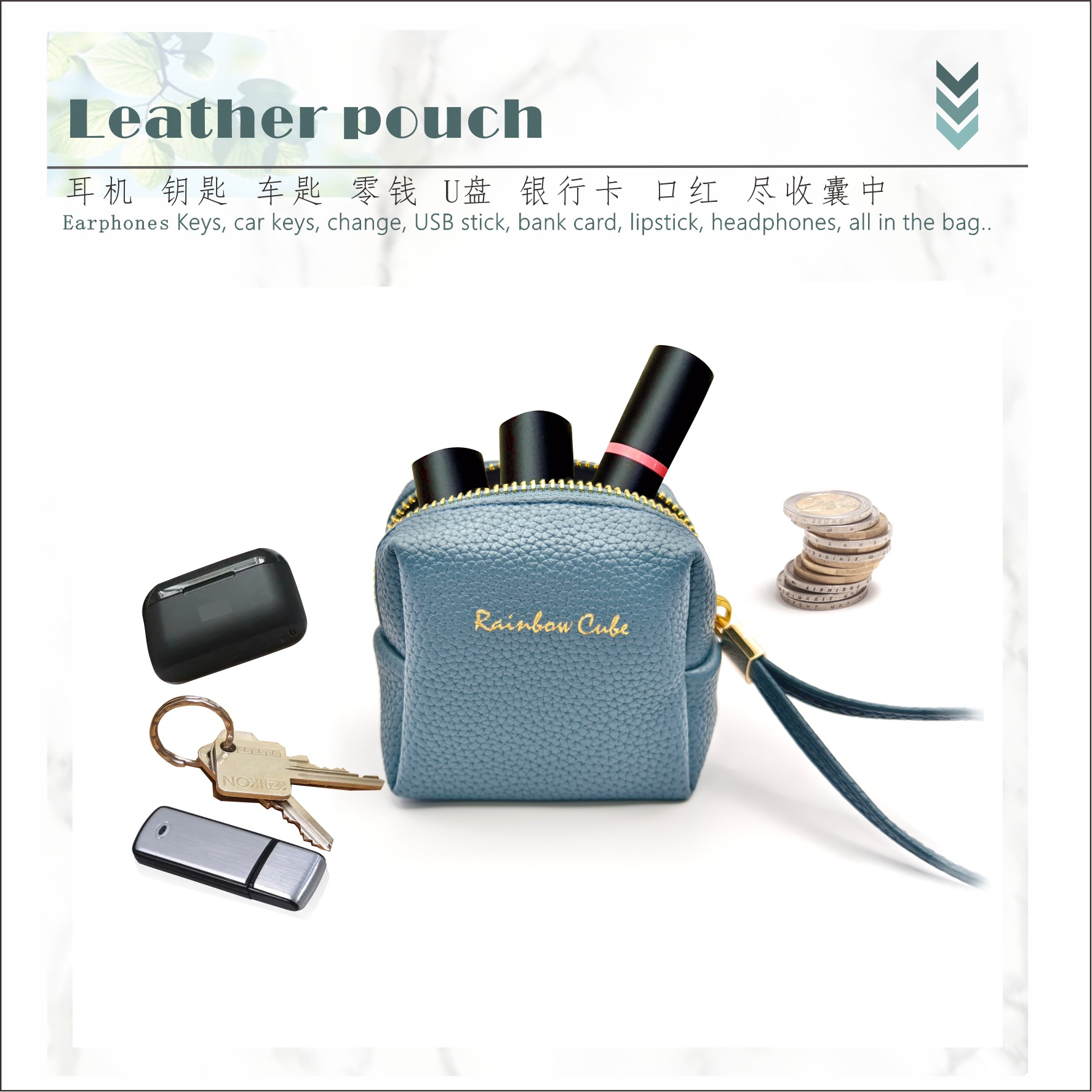 리치 패턴 가죽 화장품 가방, 편리하고 컴팩트한 이어폰 가방, 생리대 가방, 수납 및 정리, 휴대용 다기능스토어 가기