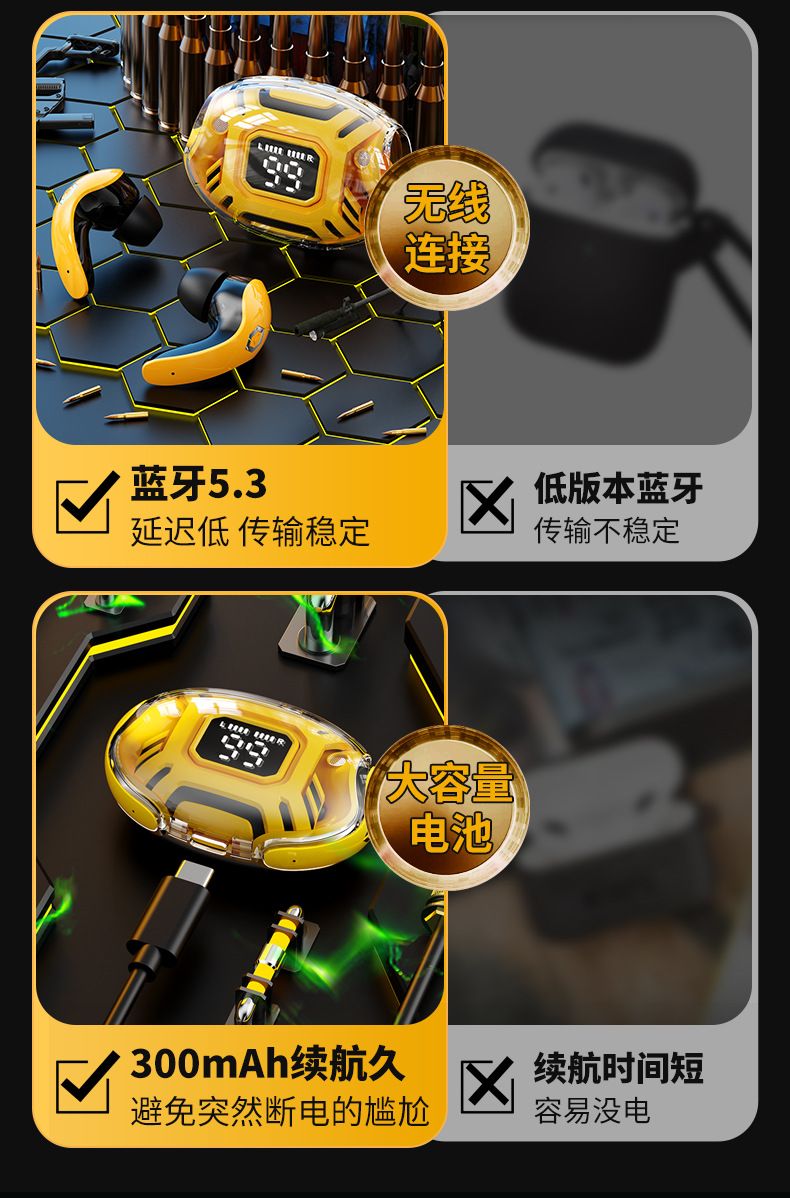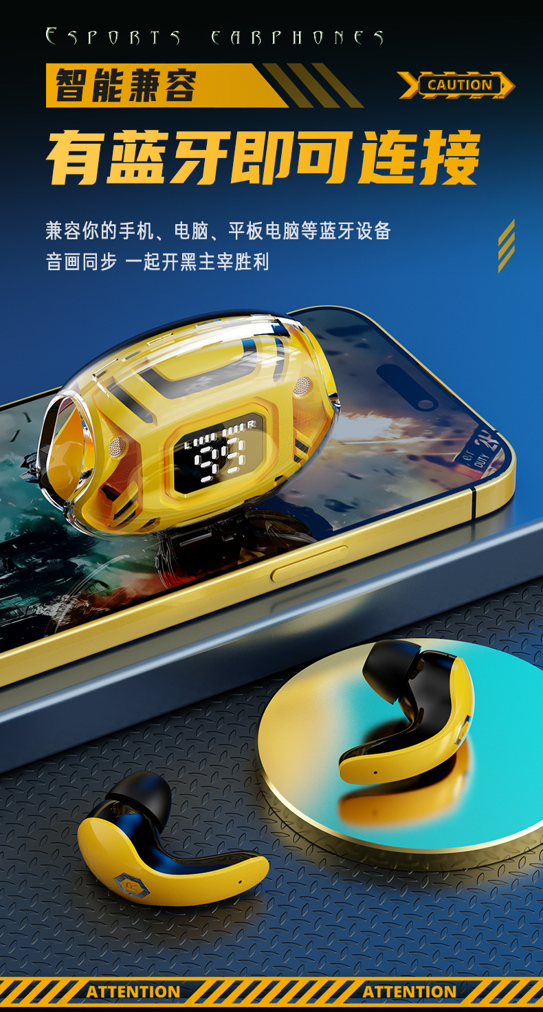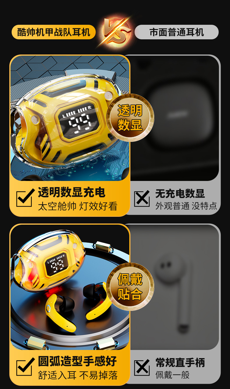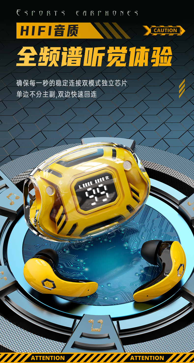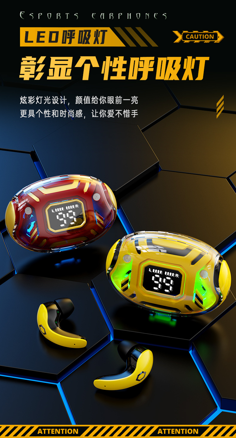 새로운 개인 모델 TWS 블루투스 헤드셋 긴 내구성 좋은 사운드 품질 인 이어 메카 호흡 라이트 게임 헤드셋스토어 가기
