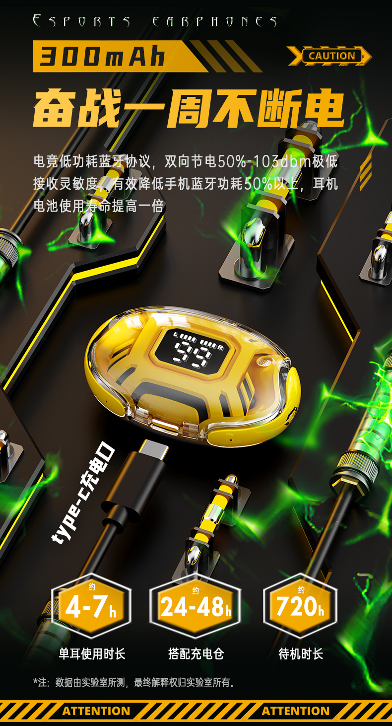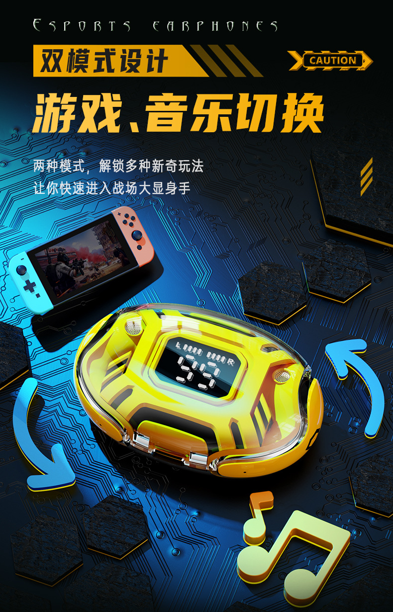 새로운 개인 모델 TWS 블루투스 헤드셋 긴 내구성 좋은 사운드 품질 인 이어 메카 호흡 라이트 게임 헤드셋
