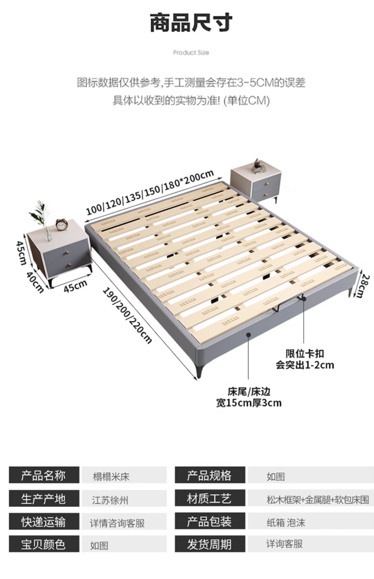 • 침대 옆이 없는 침대(일반 11개 침대 보드) + 독립 가방 및 롤업 매트리스 20cm 개