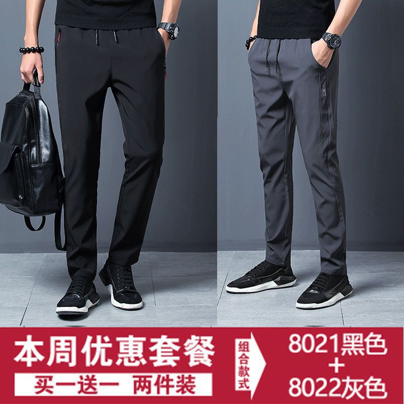 夏季休闲裤男薄款冰丝长裤子弹力百搭潮流直筒裤修身运动速干磊红스토어 가기