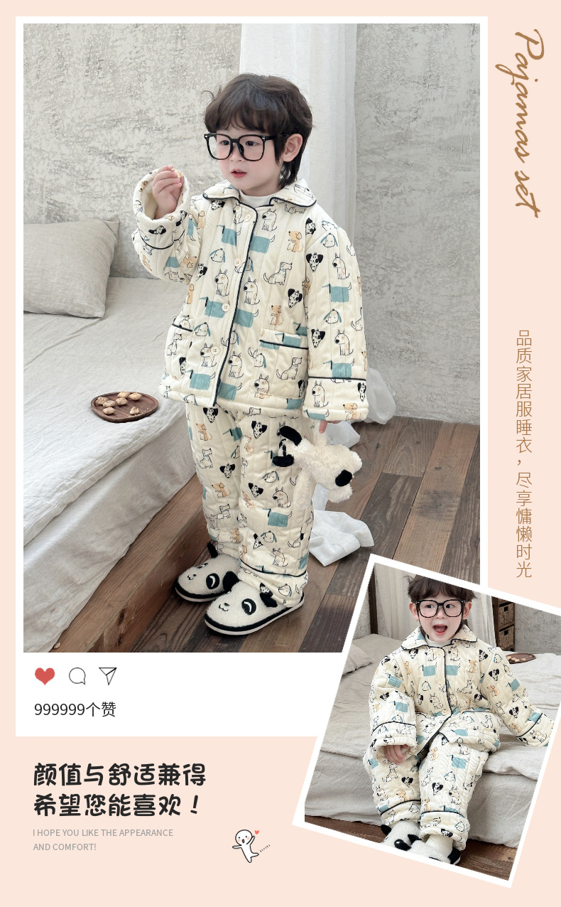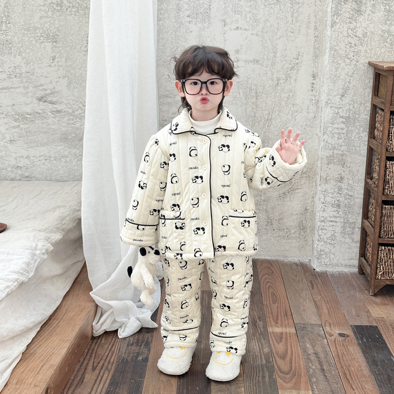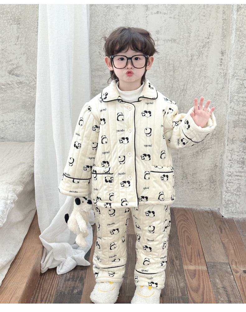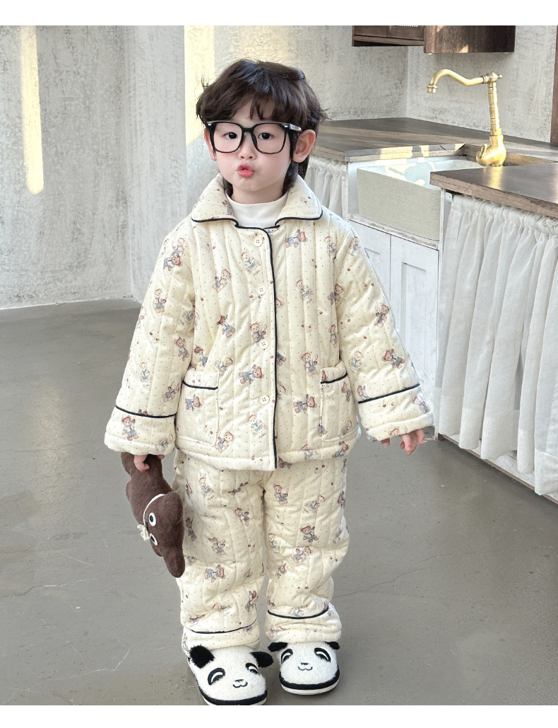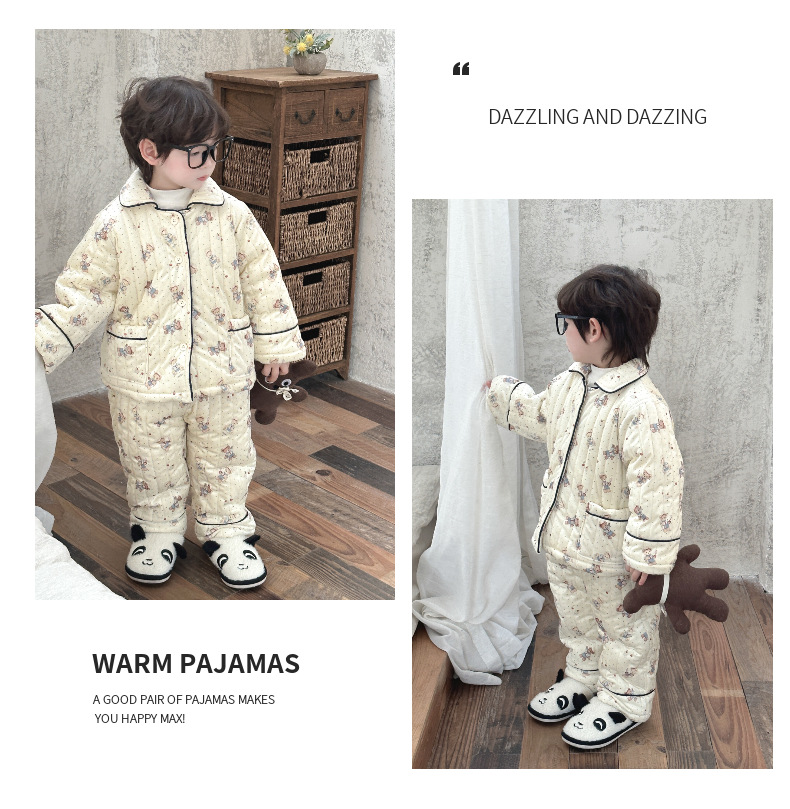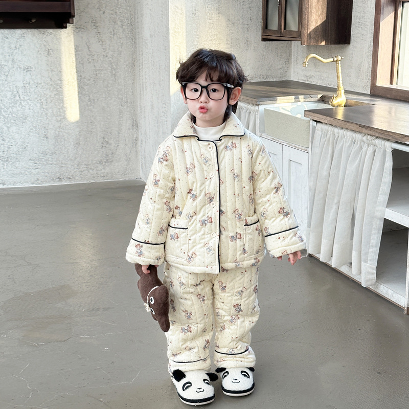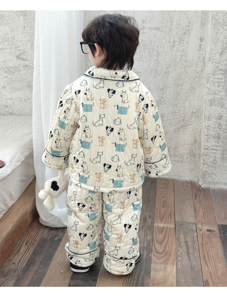 소년의 겨울 새 어린이 기모 두꺼운 면화 패딩 재킷 파자마 겨울 남성면 패딩 홈 의류 투피스 세트