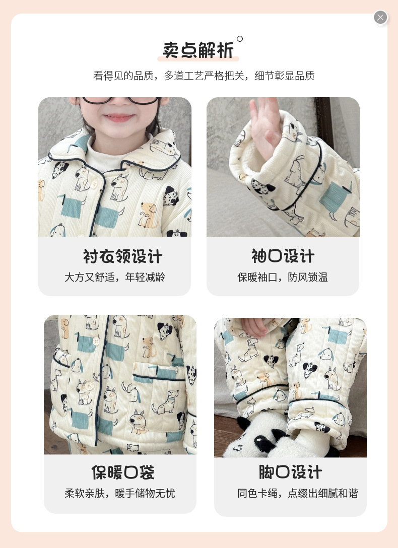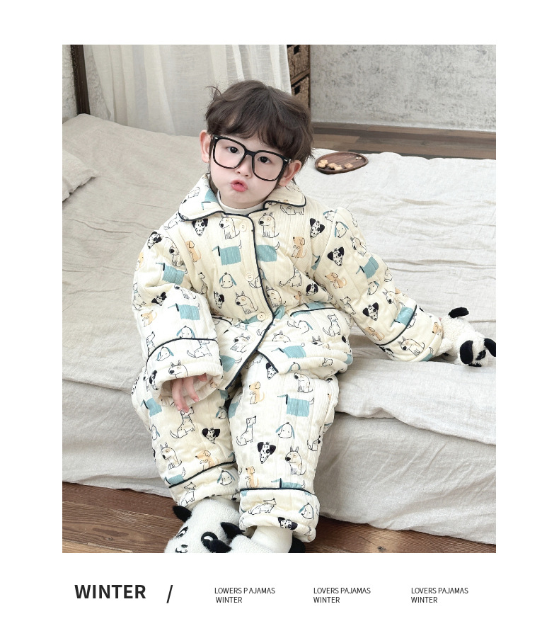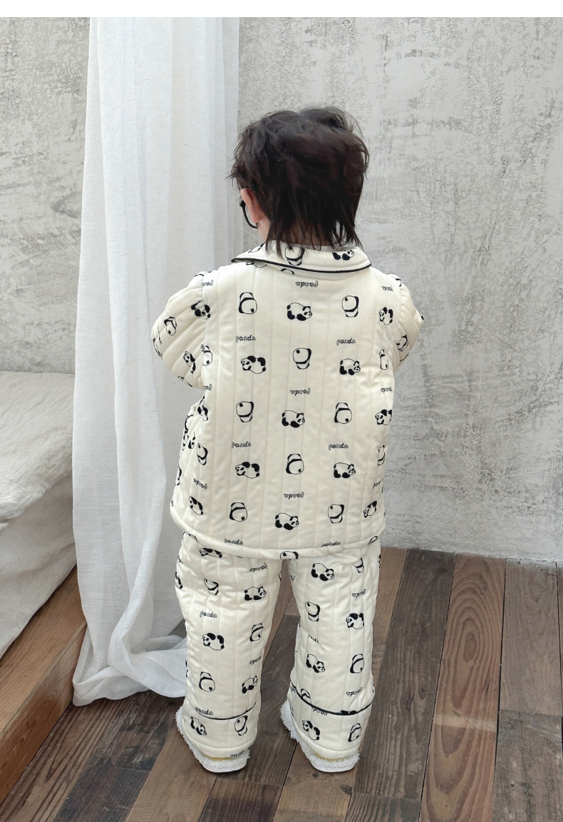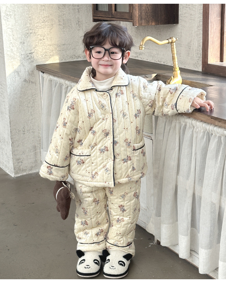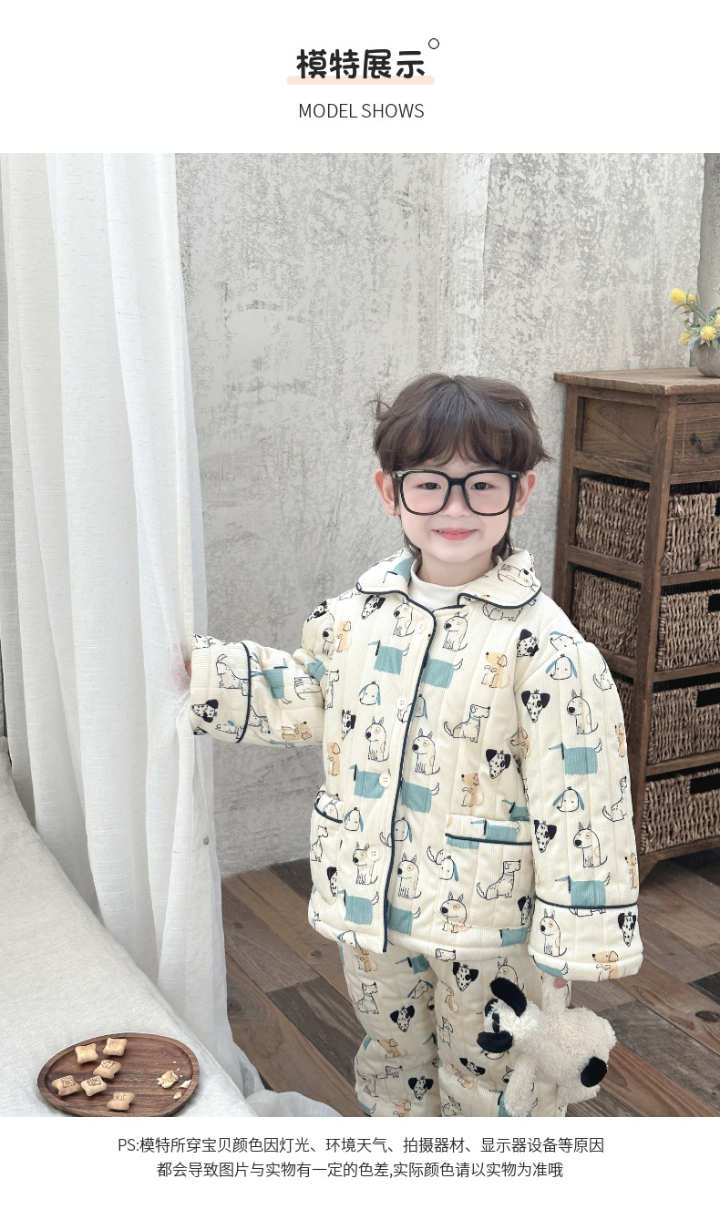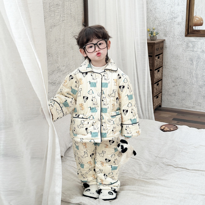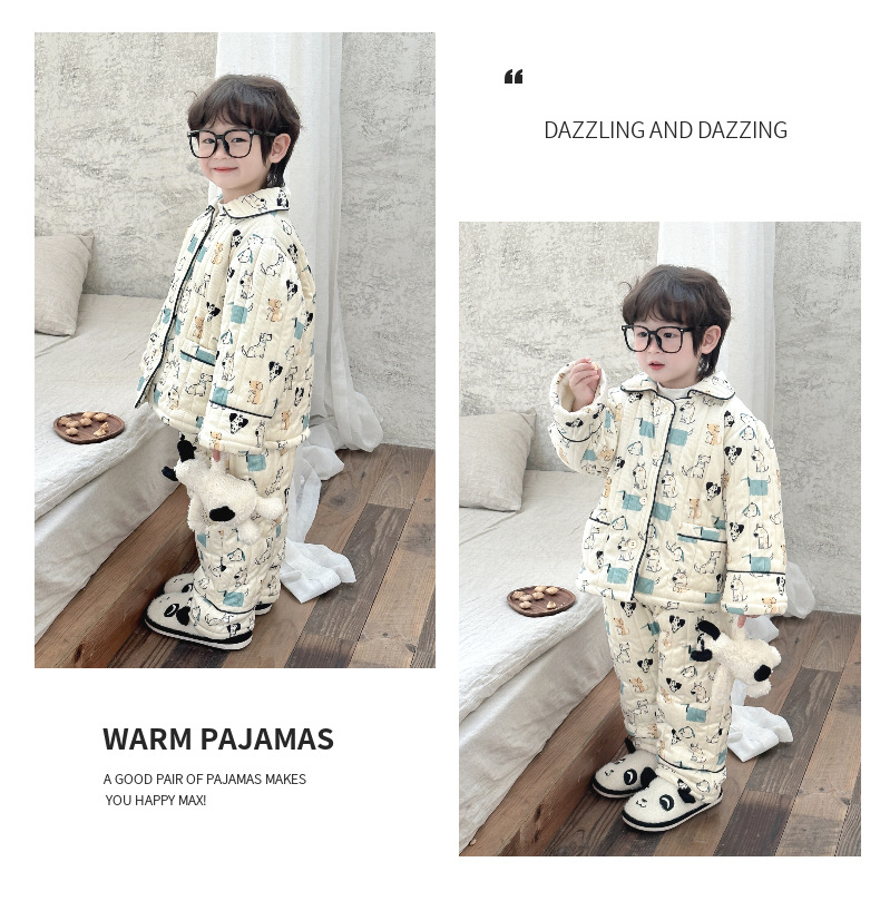 소년의 겨울 새 어린이 기모 두꺼운 면화 패딩 재킷 파자마 겨울 남성면 패딩 홈 의류 투피스 세트