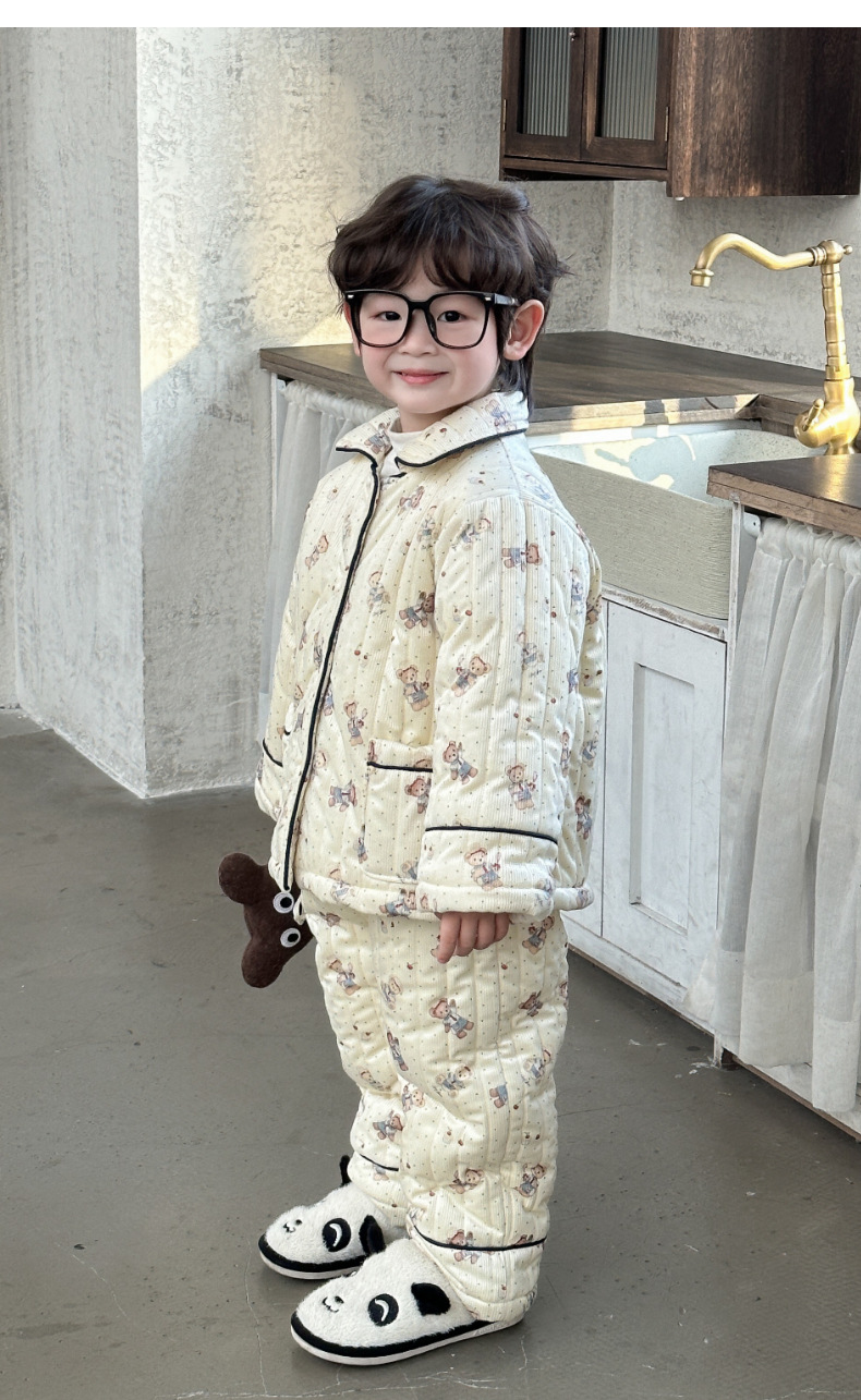 소년의 겨울 새 어린이 기모 두꺼운 면화 패딩 재킷 파자마 겨울 남성면 패딩 홈 의류 투피스 세트스토어 가기