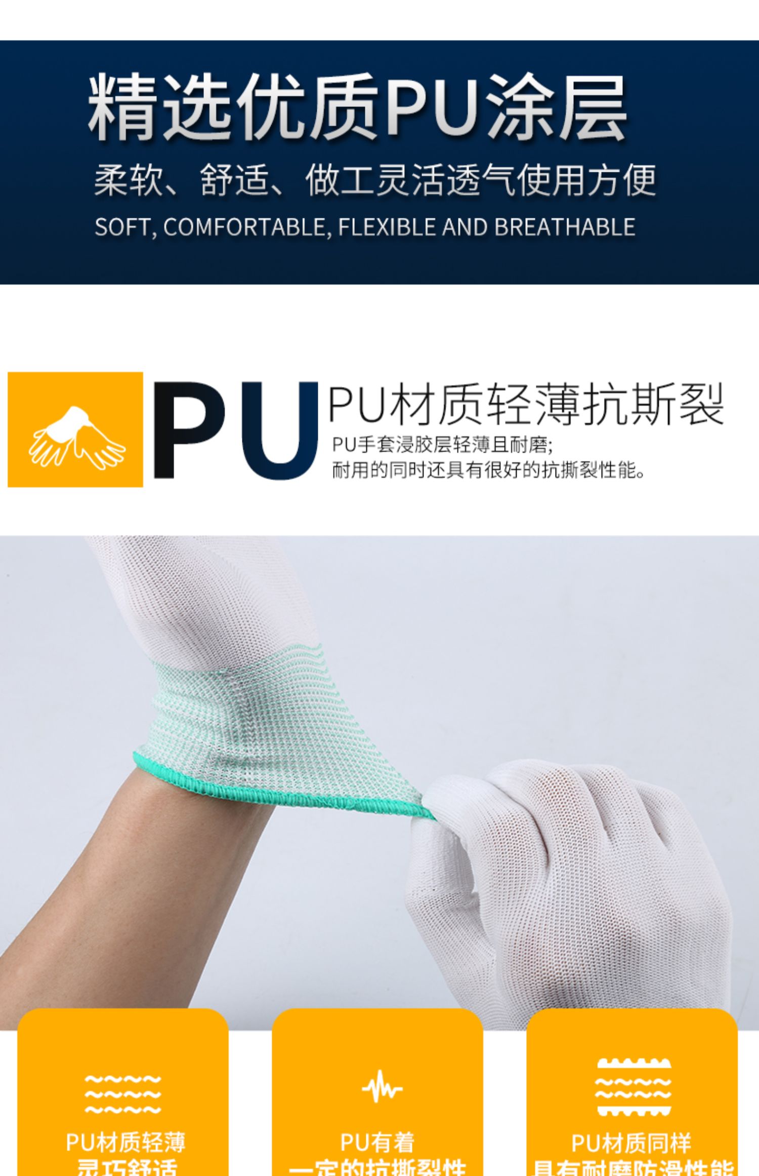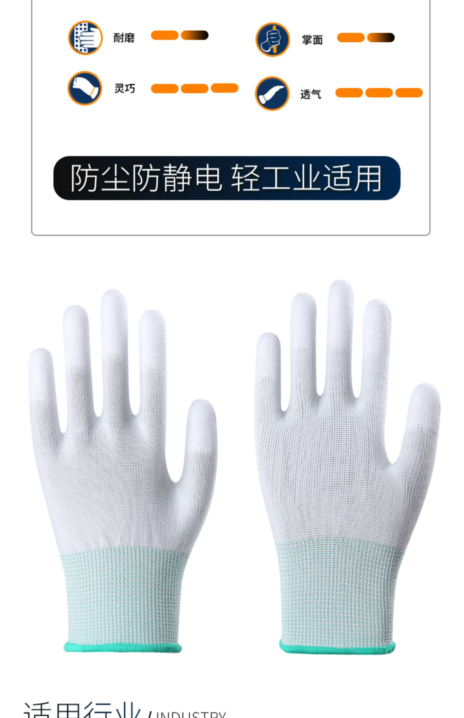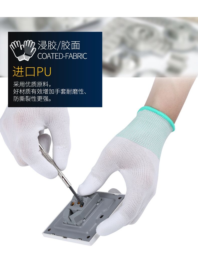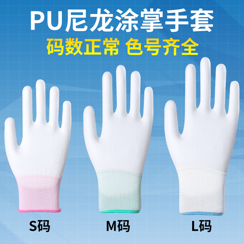 장갑 노동 보호 내마모성 작업 PU 정전기 방지 손가락 코팅 팜 나일론 담그기 남성과 여성의 노동 미끄럼 방지 보호 시첸스토어 가기