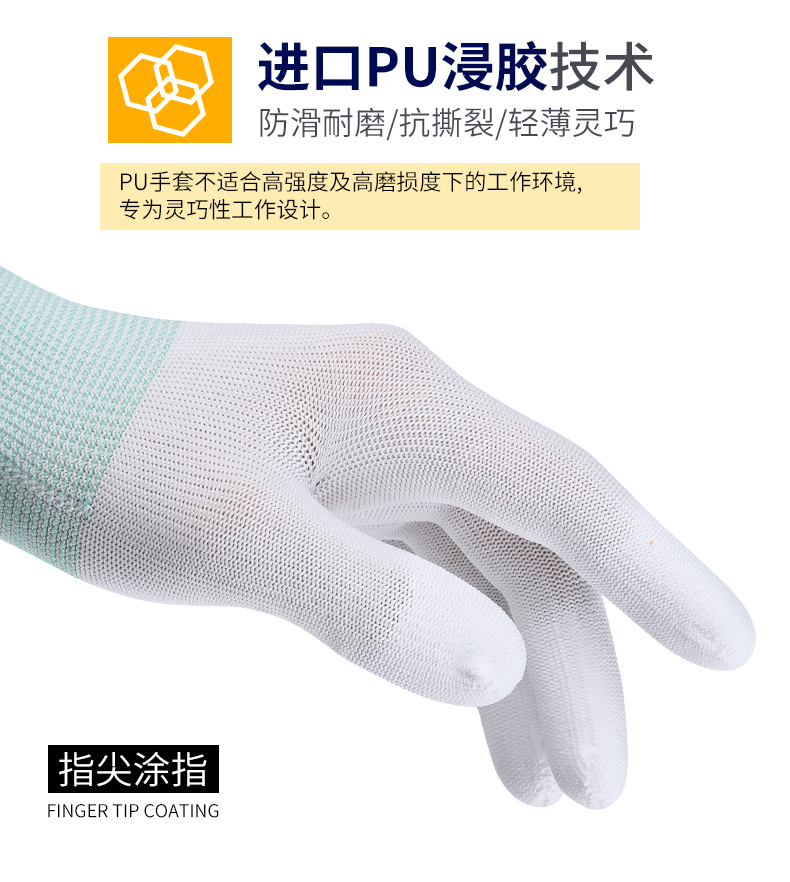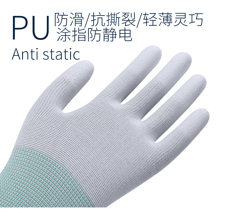 장갑 노동 보호 내마모성 작업 PU 정전기 방지 손가락 코팅 팜 나일론 담그기 남성과 여성의 노동 미끄럼 방지 보호 시첸